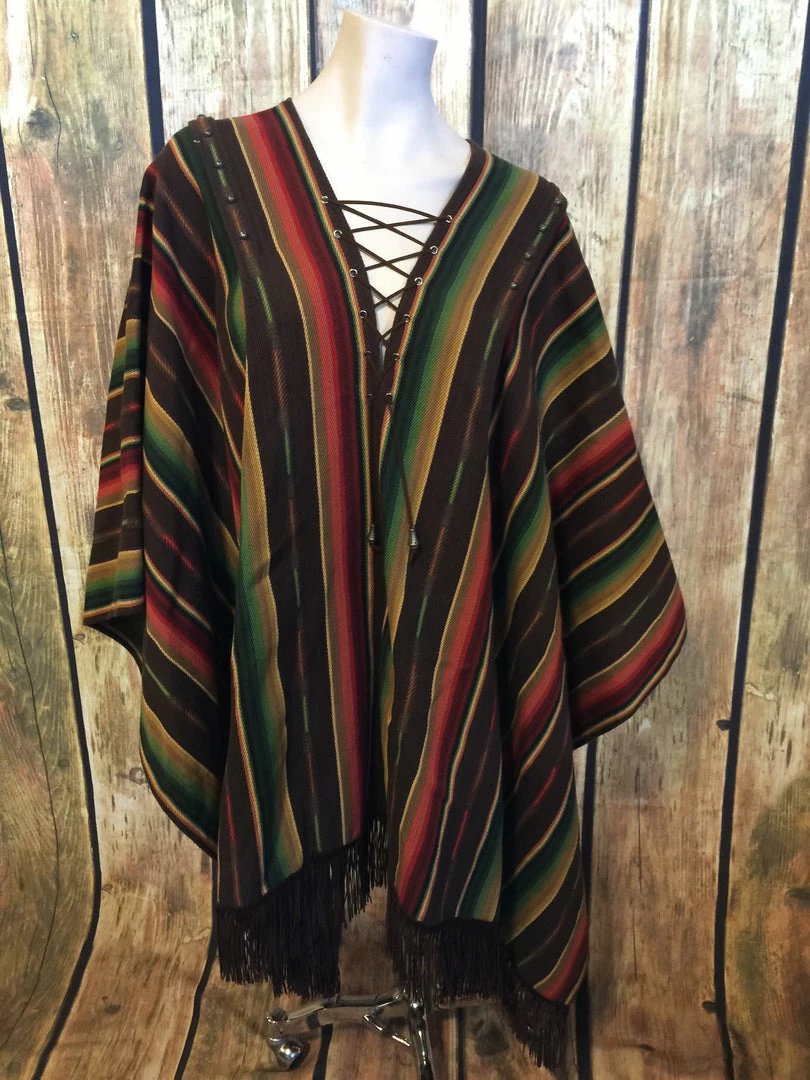 This is a one size fits all poncho wleather lace up front in beautiful brown tonesΒ