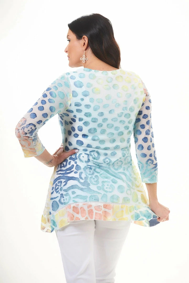 We adore this burnout printed tunic. It is figure flattering and just the right length to style with leggings or jeans. The soft and cozy material is a unique burnout texture that you’ll love.Β