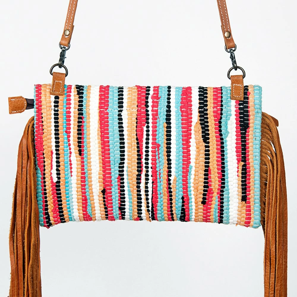 American Darling Multi-Striped Woven Clutch w/ Fringe