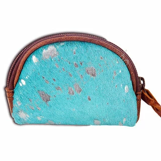 Turquoise Acid Wash Hide Coin Purse with Zipper closure.Β Colors may vary due to hides are not alike.