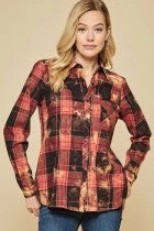 Andree by Unit button down plaid tie dye top is beautifully crafted with patch on back and contrast print panel on back. Easy fit, loose fit.