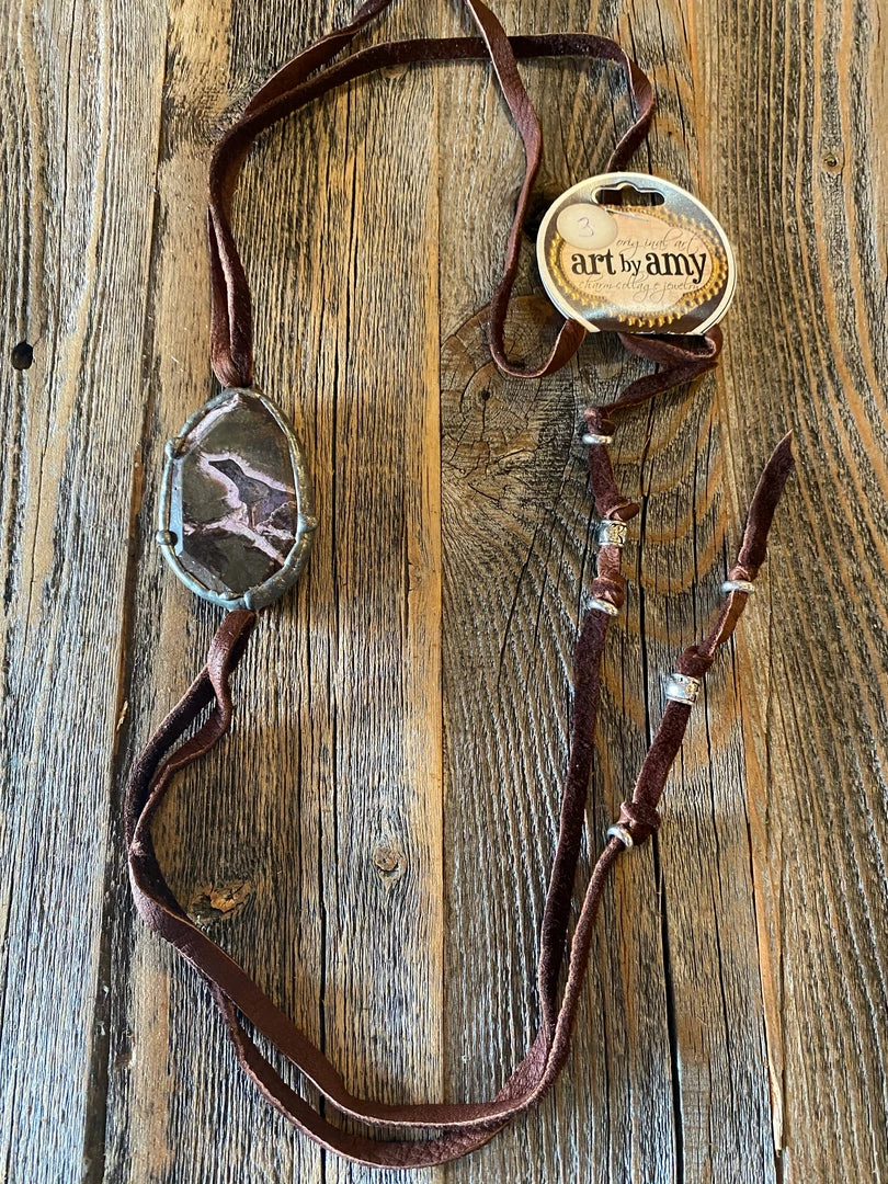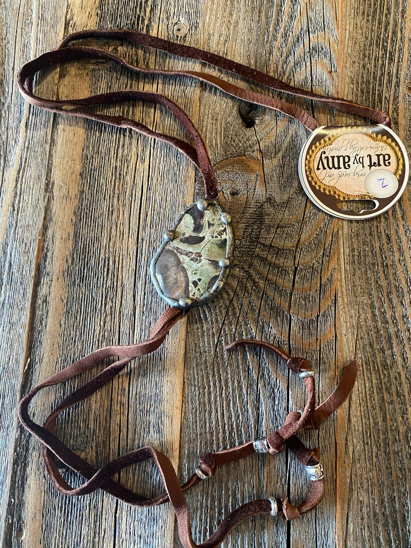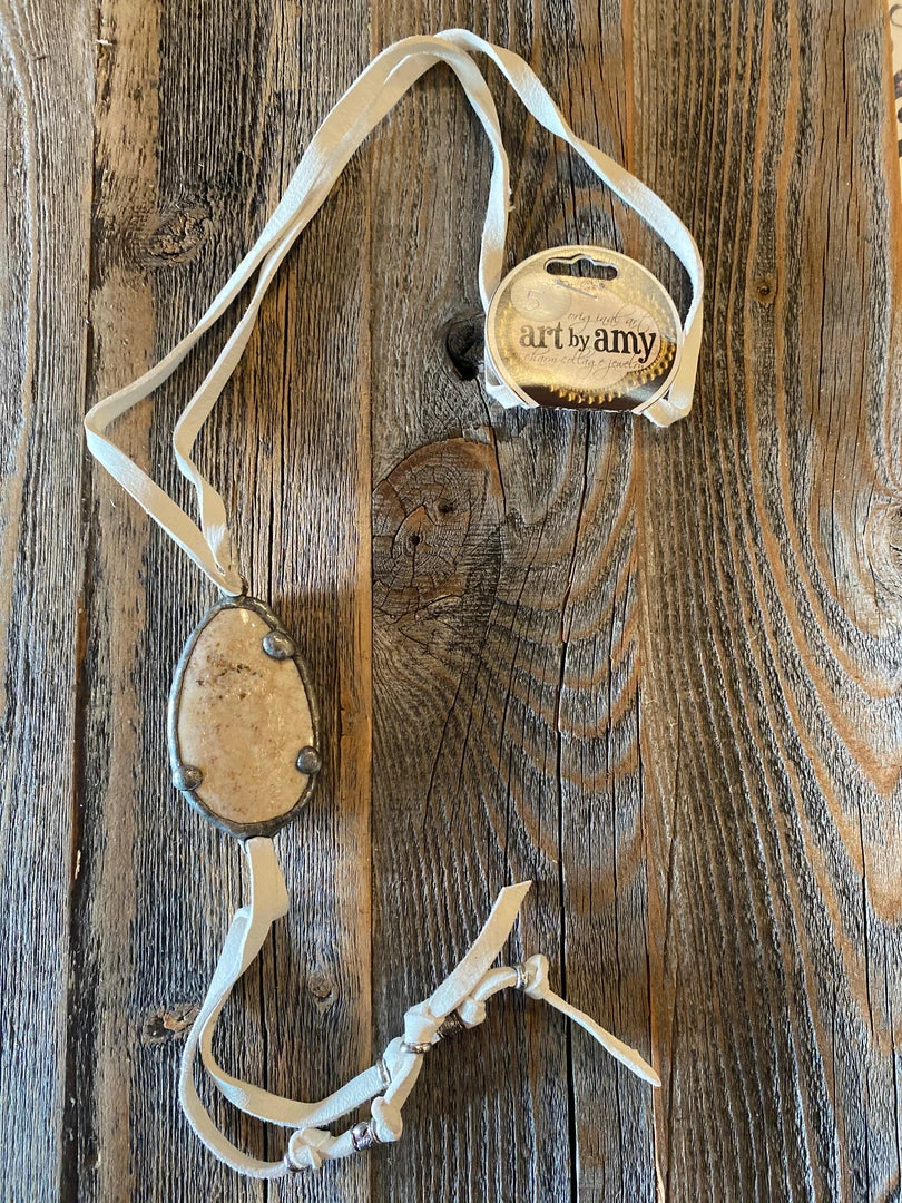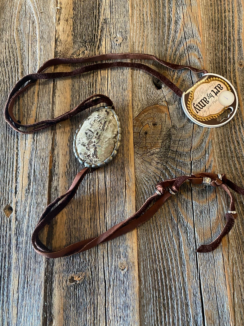 Approx 60 in. long w/stone silver beading around stone and silver beads