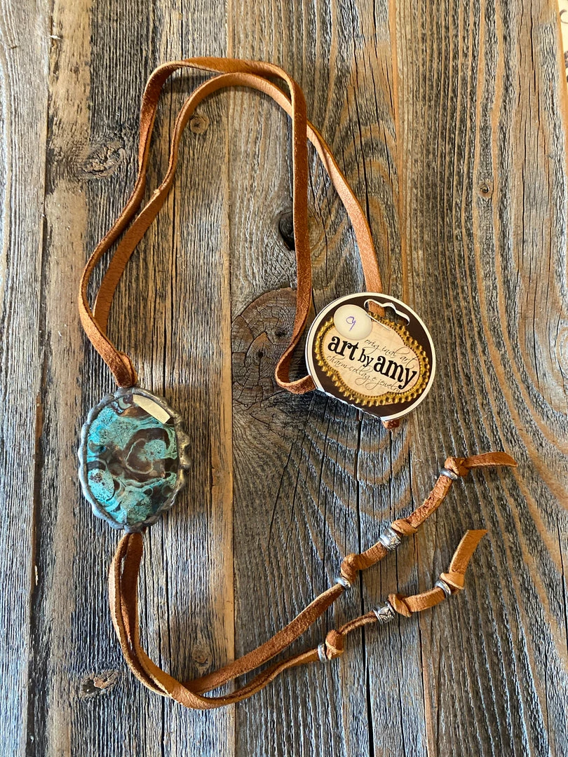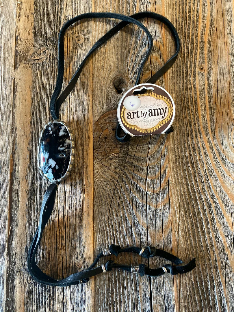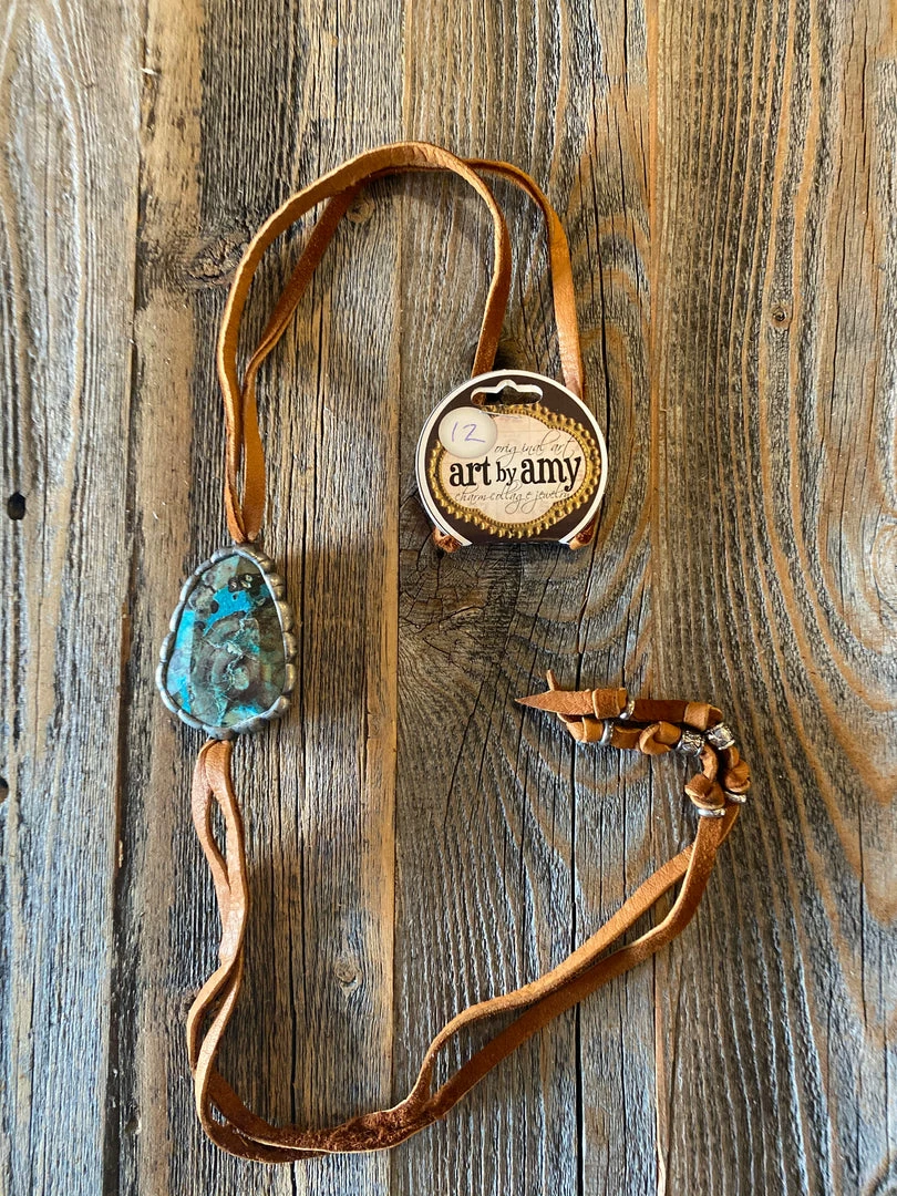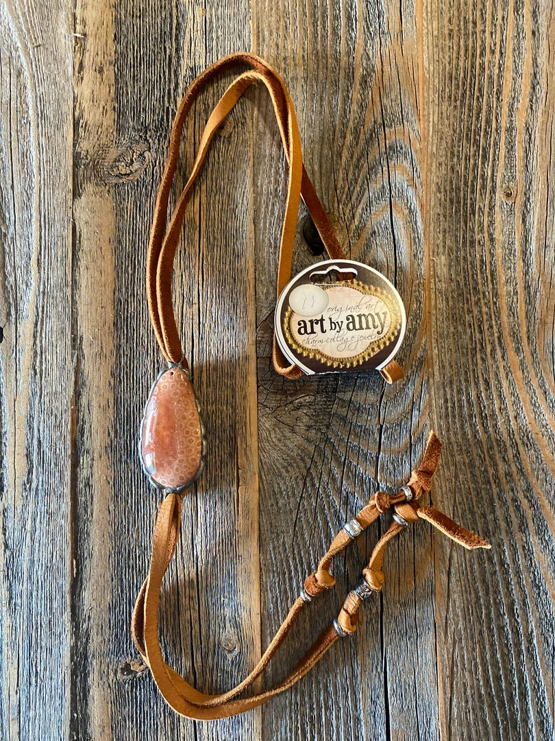 Approx 60 in. long w/stone silver beading around stone and silver beads