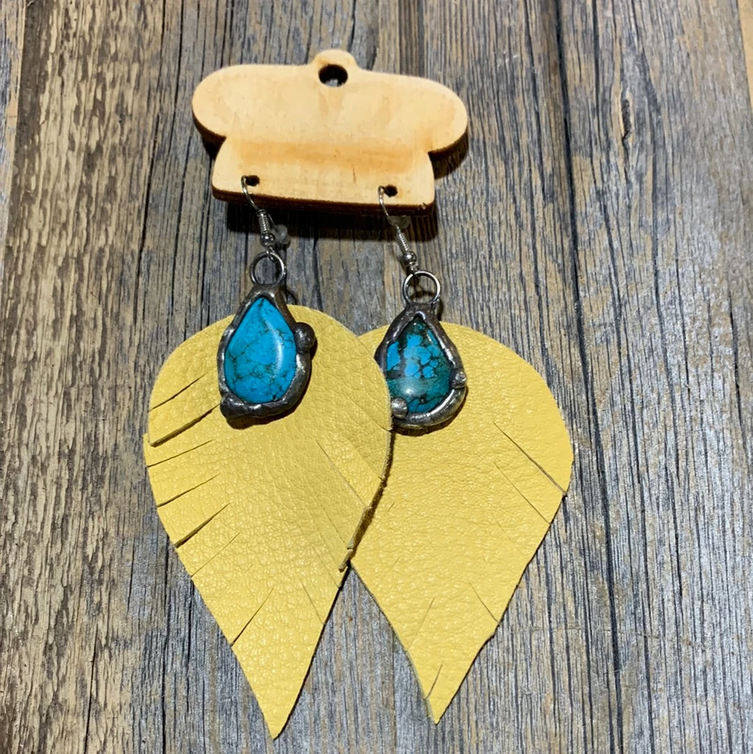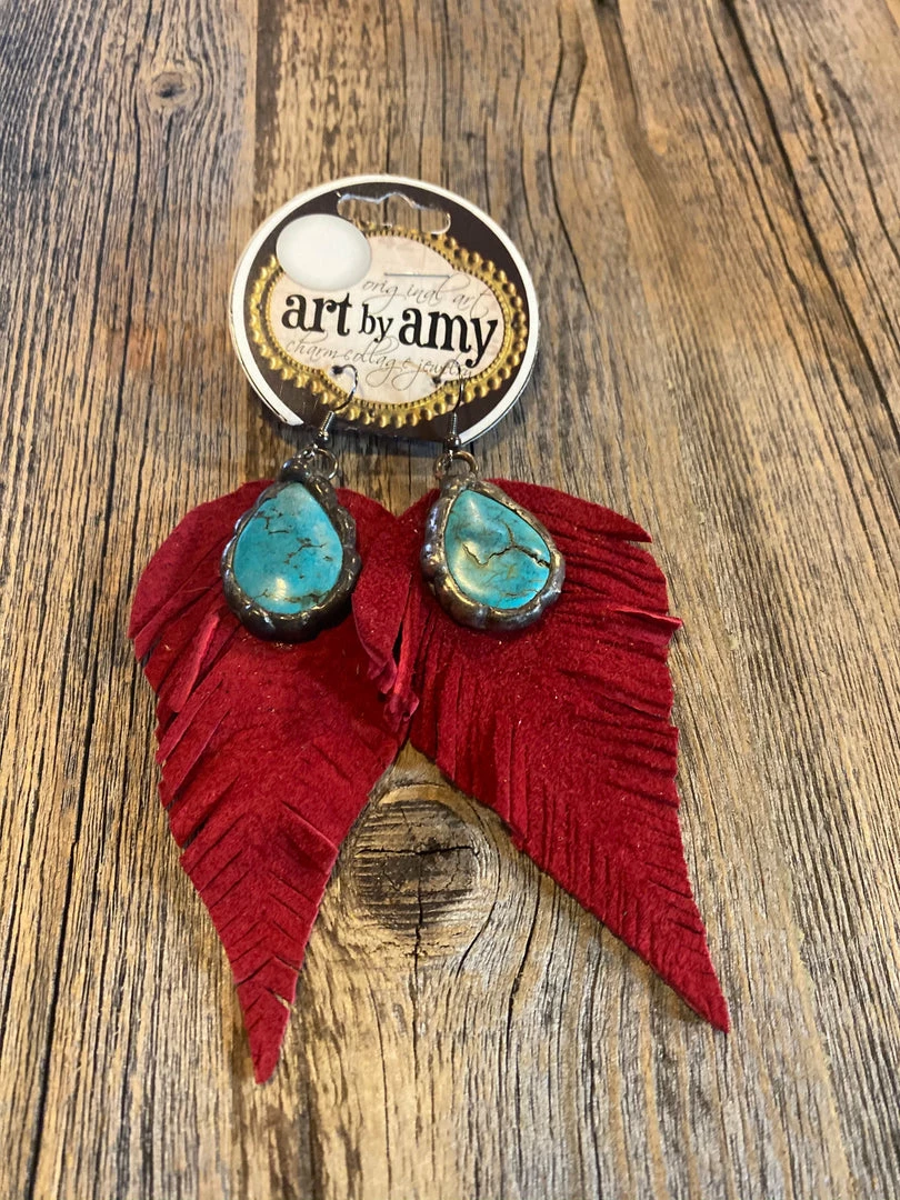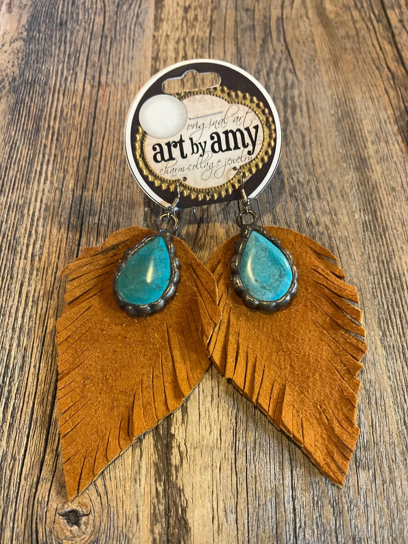 Art By Amy Leatherย Earrings with turquoise – several colors to pick from