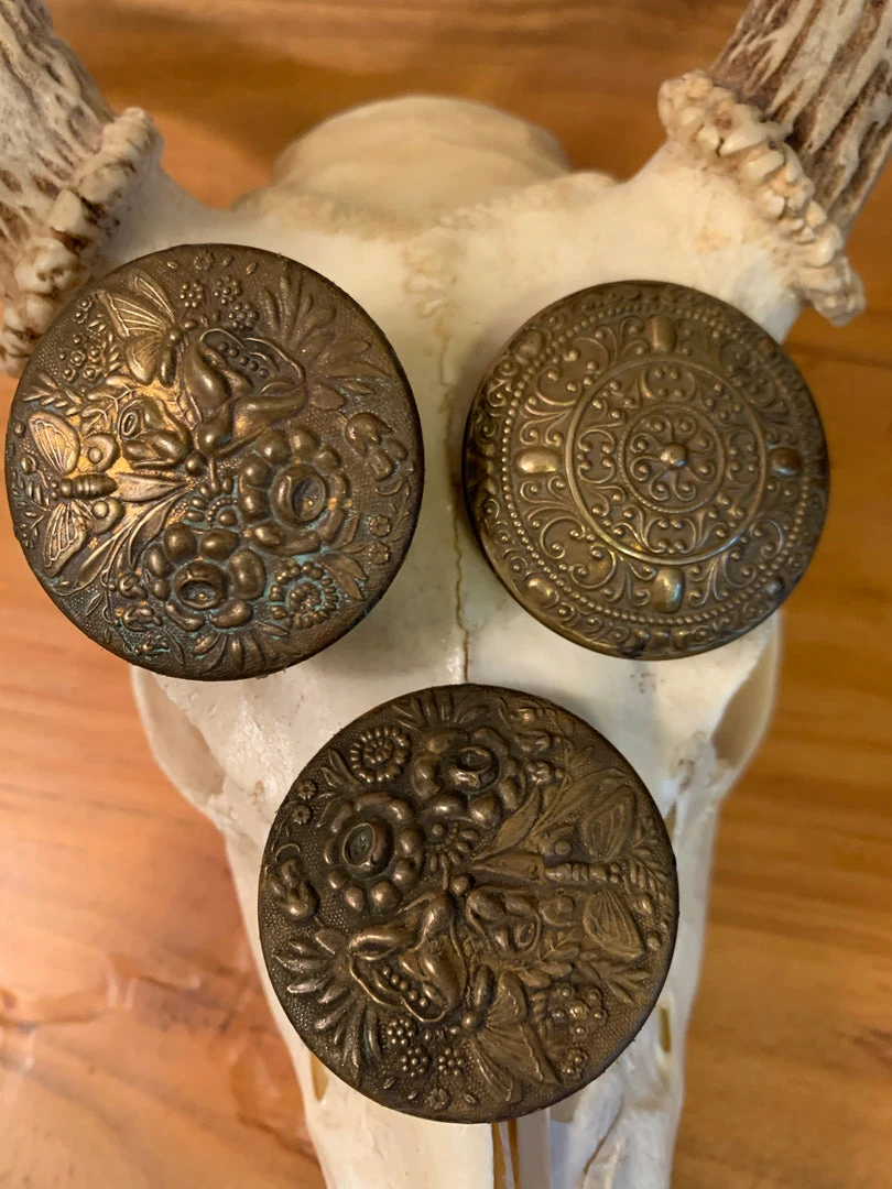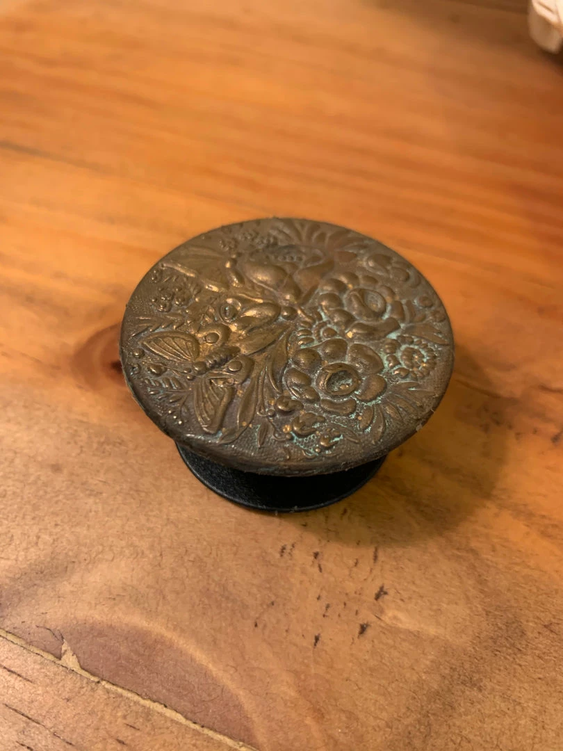 Vintage Brass cell phone grips for the back of your phone.ย Adhesive sticker on back of each one and it does have a pull up feature to extend grip.