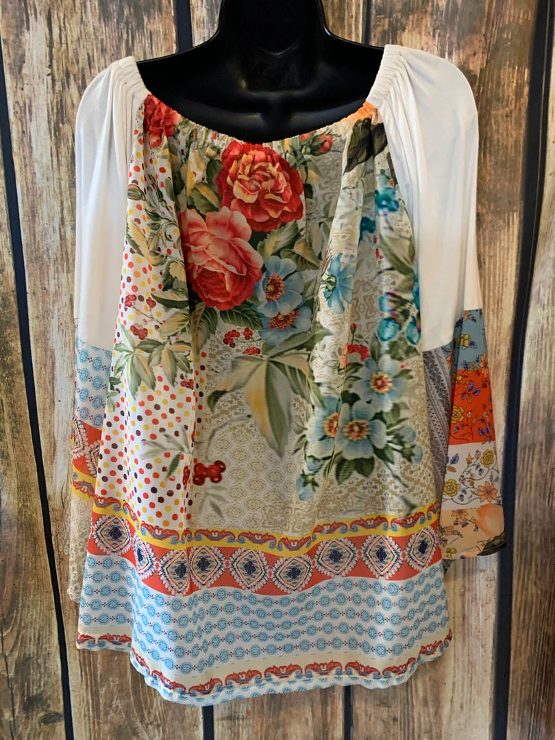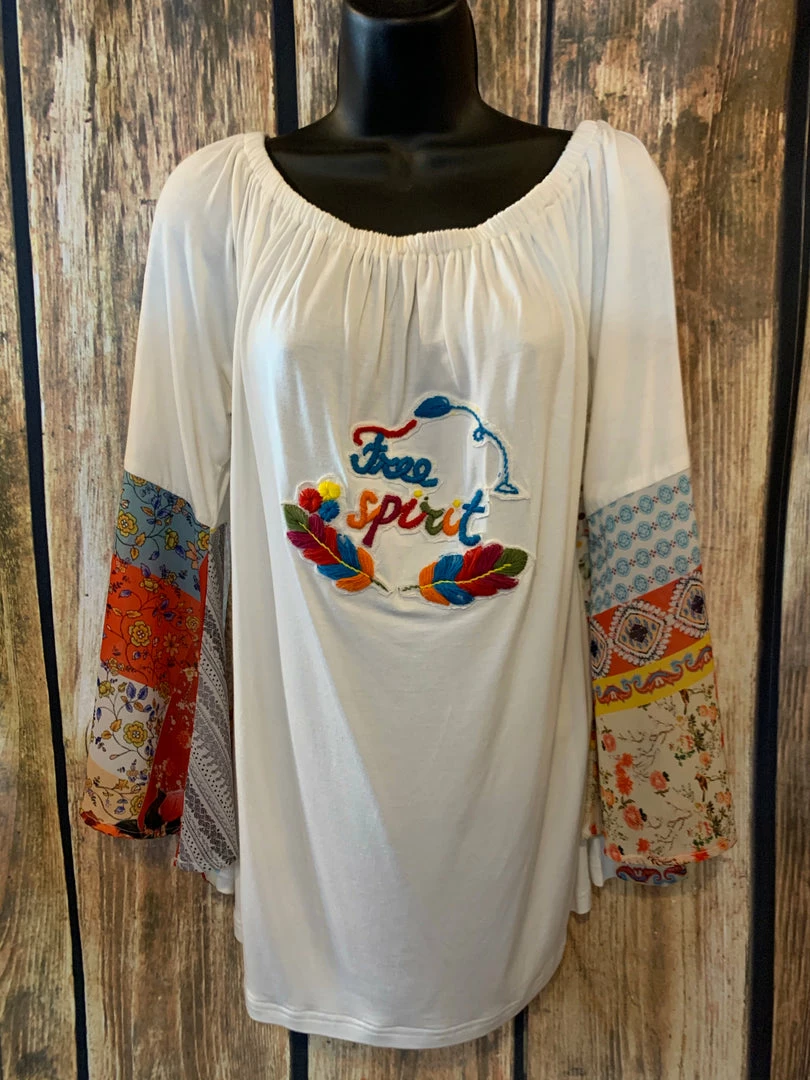 Avani Free Spirit Tunic with sheer bell sleeves and sheer floral back