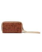 Our Sally tooled leather Wristlet Wallet is our roomiest style of wallet, with ample space to keep you organized! This wallet can be worn as a stylish wristlet and features plenty of card slots and compartments.