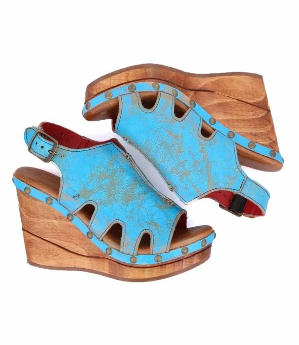 Boost your mood with every step in NAIYA. A cheery leather wedge sits on a sustainably sourced wood bottom, with an open toe and breezy cutouts. NAIYA also boasts a cushioned insole for comfort, brass metal stud accents and an adjustable buckle with matching brass hardware. Sunny days call for NAIYA.