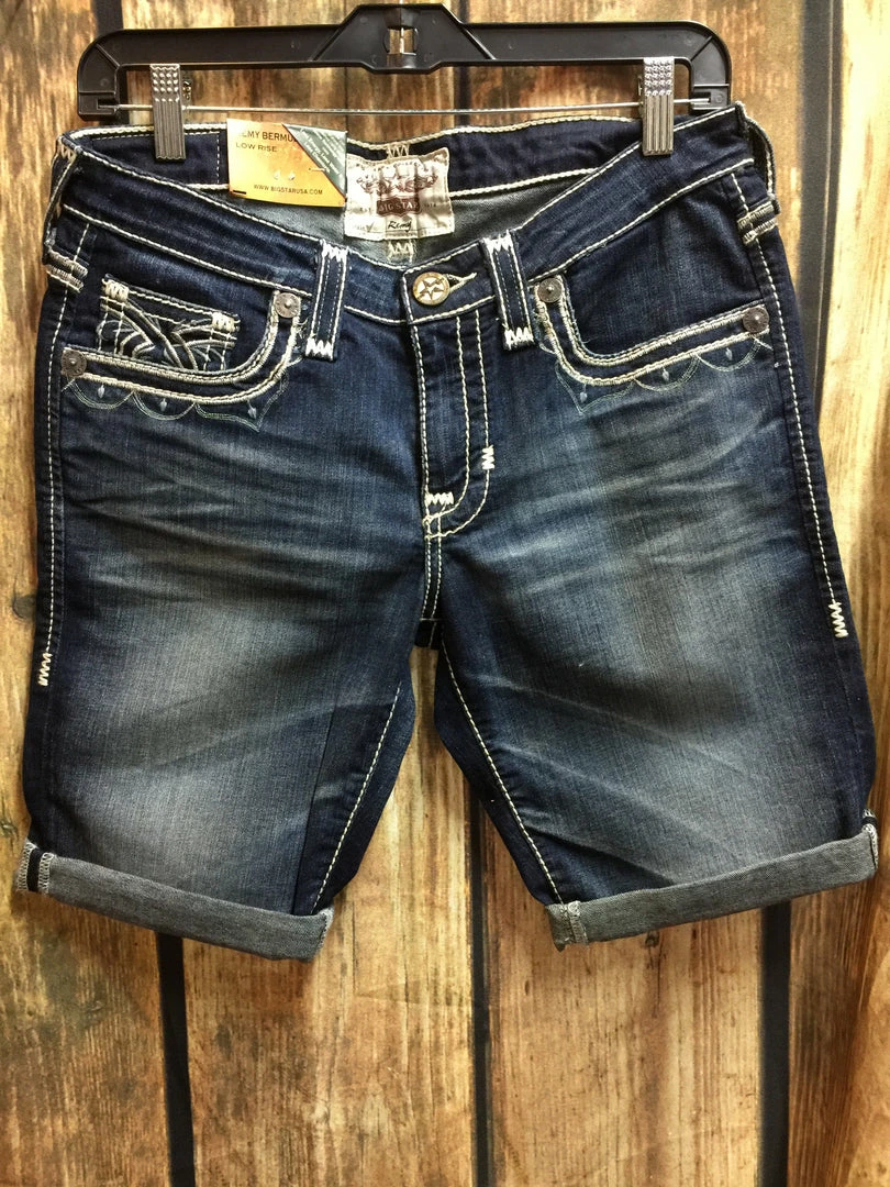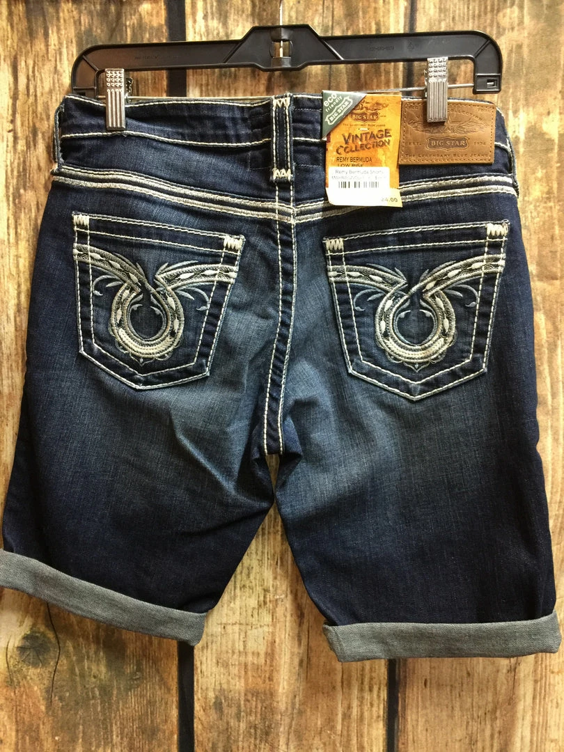 Remy bermuda shorts by Big Star have whipped stitching in front and back with embroidery on back pockets.