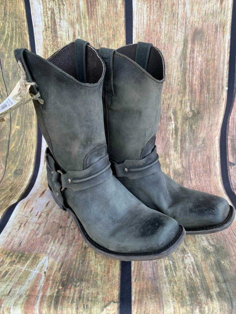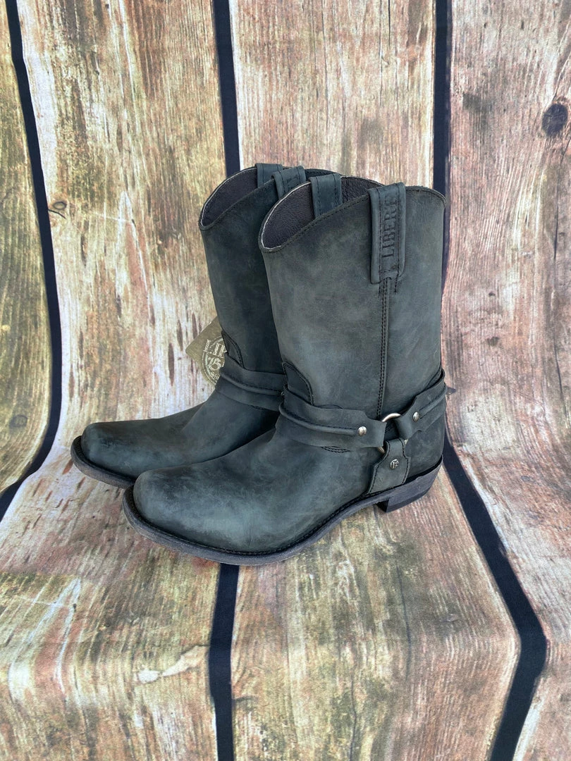 Liberty Black Harness Boot- Black distressed leather.ย All leather soles.