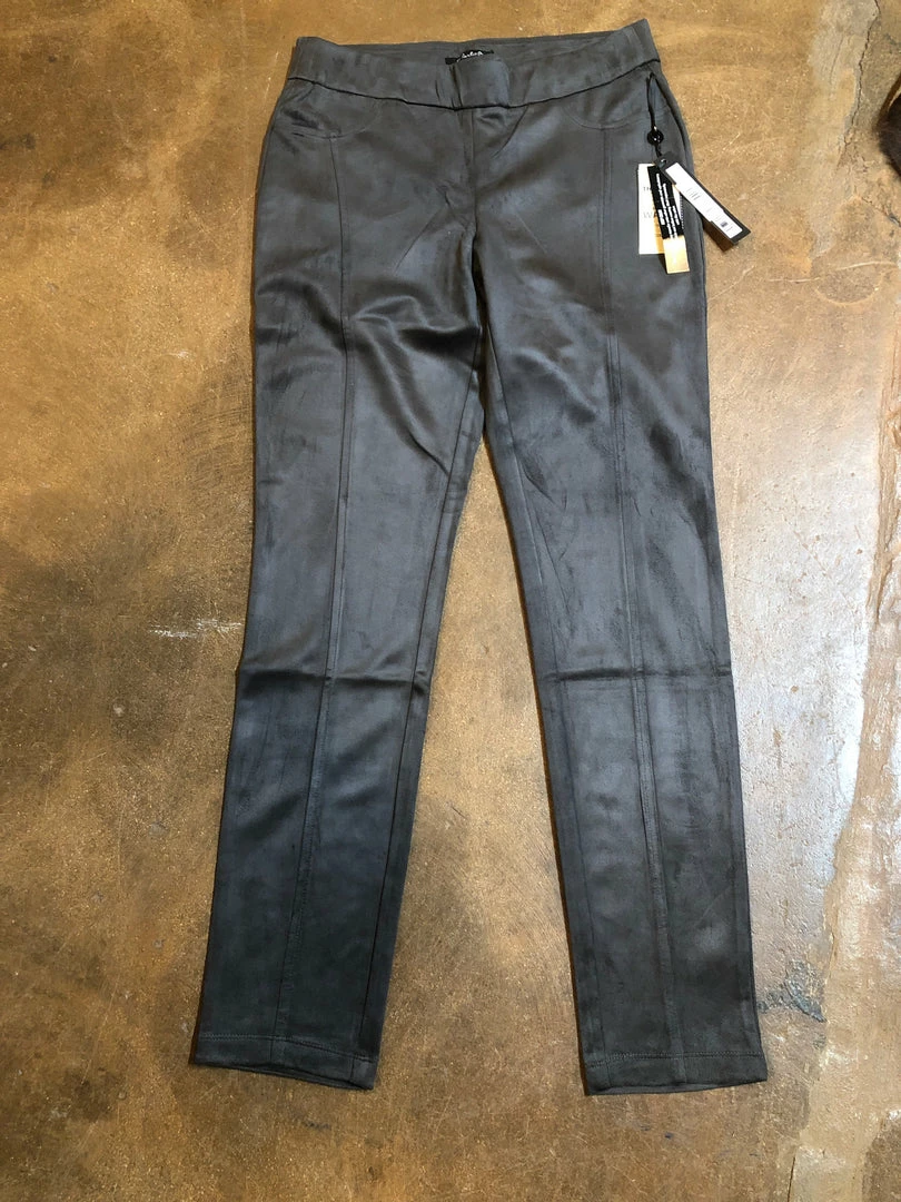 Ultra Stretch Suede Jeggings in Charcoal. Pull on waist with back pockets.