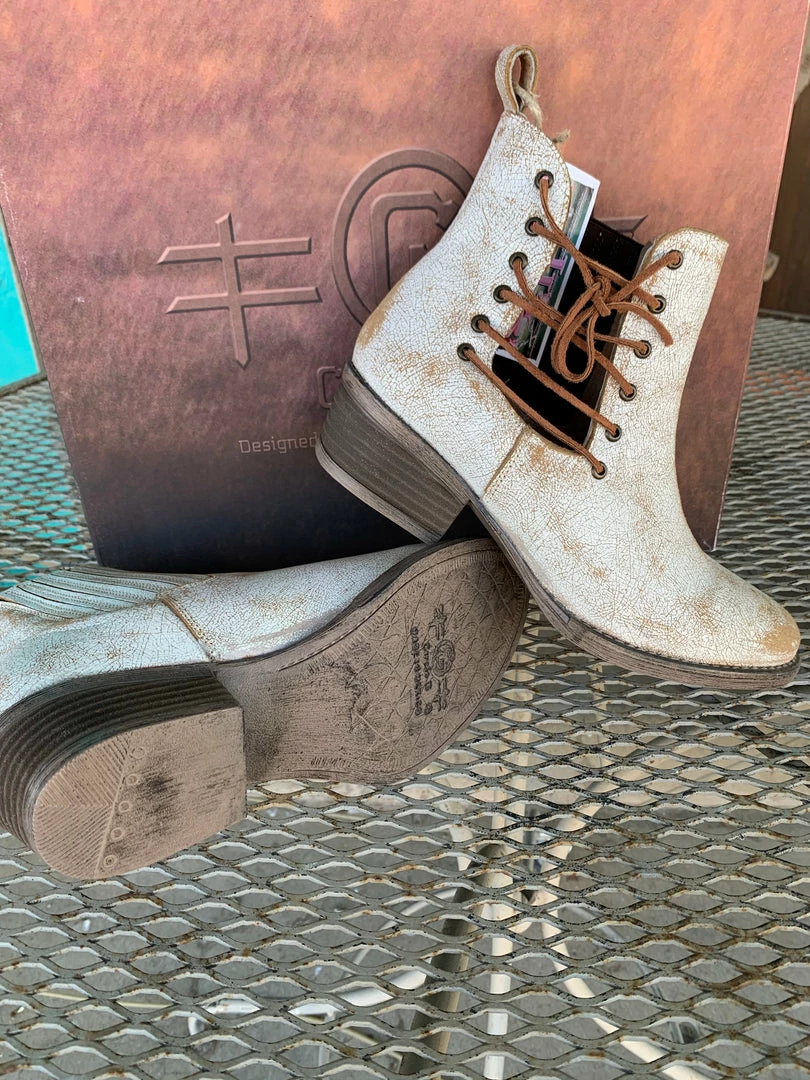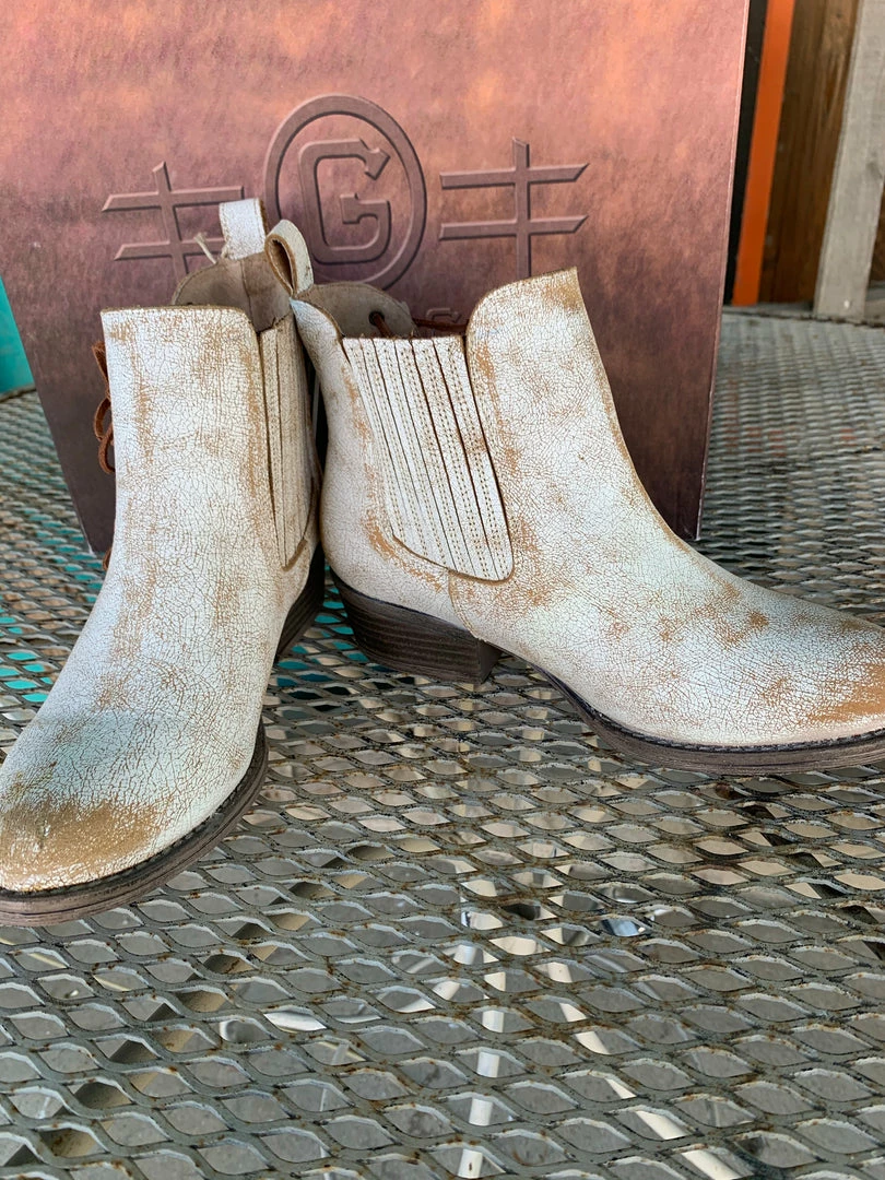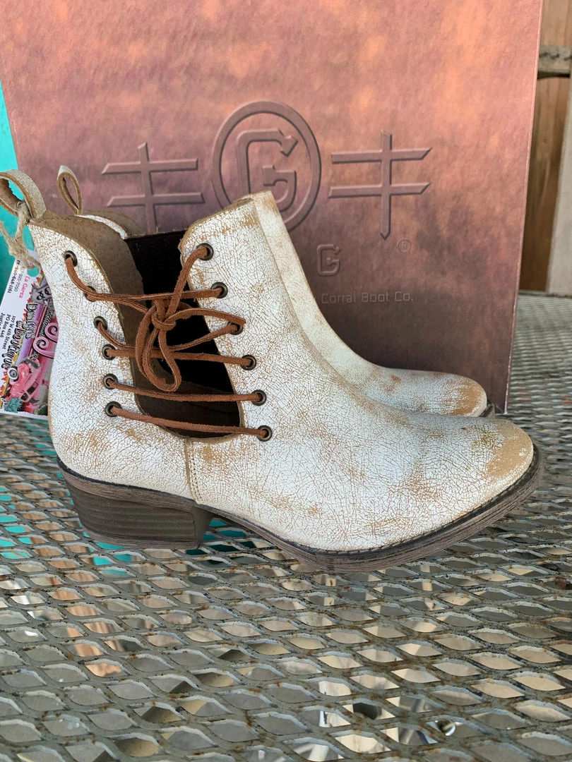 Circle G by Corral Ladies White Wash Leather/Laced on Outside and Ankle Boot Q5006