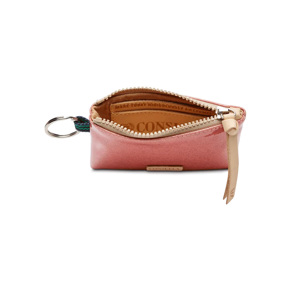 The Pouch is an easy, all-in-one bag to keep your cards and cash organized and on hand. An attached metal keyring takes the Pouch from your bag to the keys with ease.
