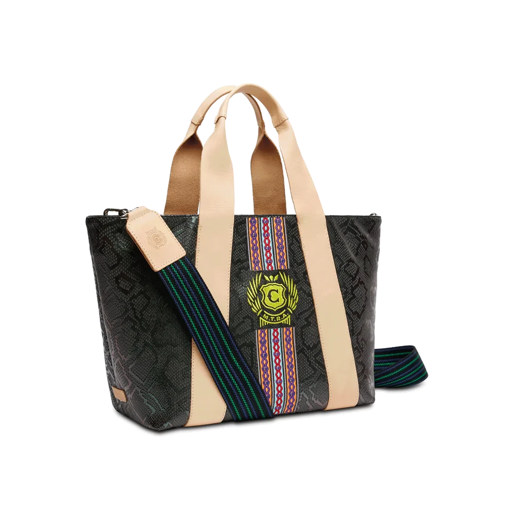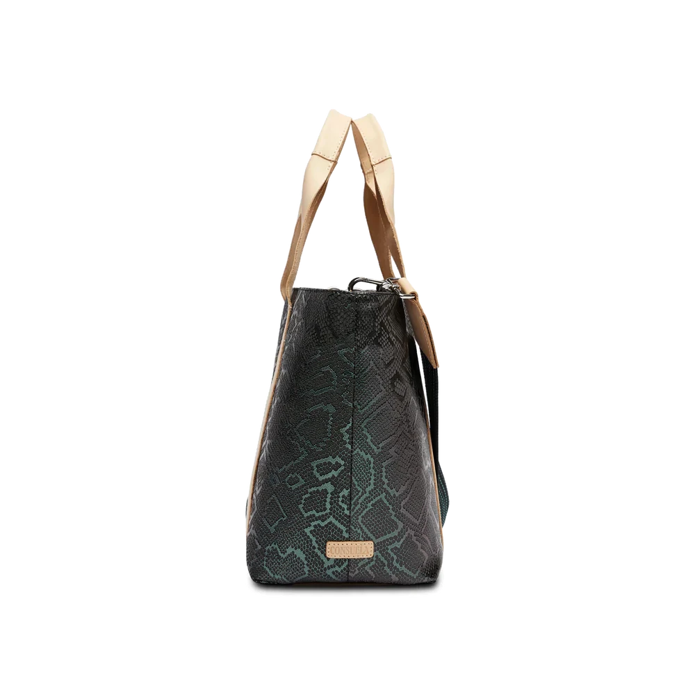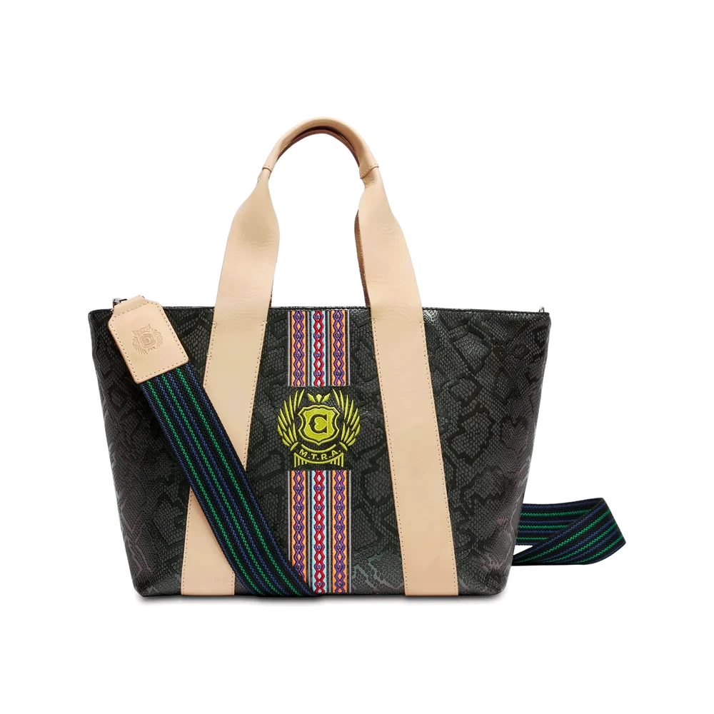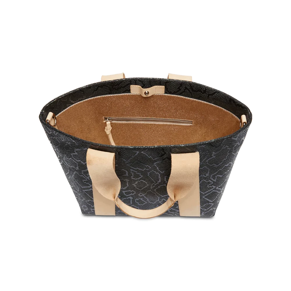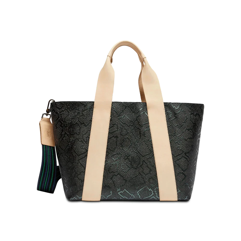 The Carryall was crafted with versatility in mind. This tote features a sturdy silhouette, interior pockets, comfortable leather handles and an adjustable crossbody-length webbing strap.