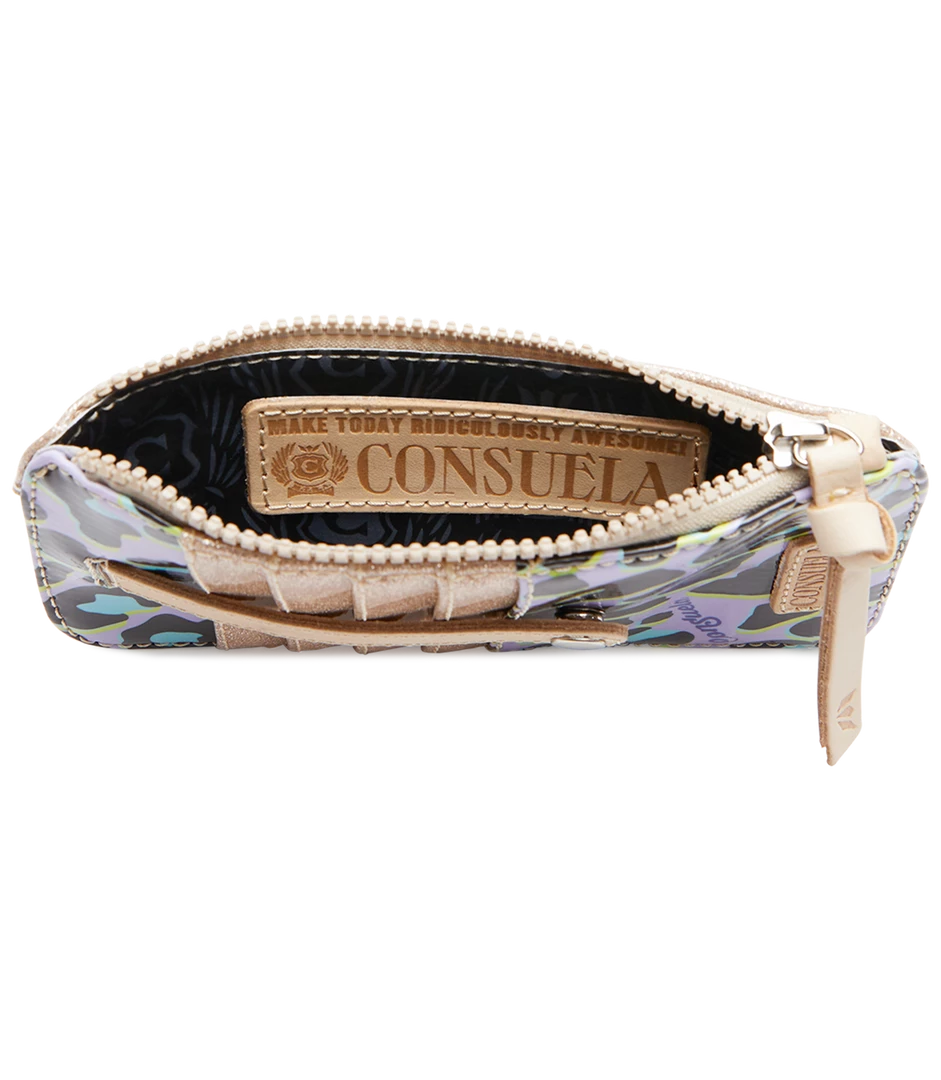 Keeping things light and easy, the card organizer is perfect for credit cards and folded bills. This wallet’s snap-closure and zipper compartment provides security while you take on the day.