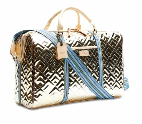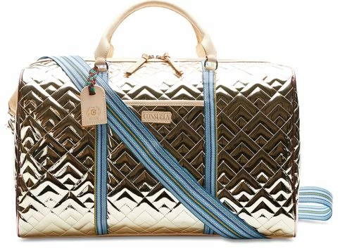 This duffle is roomy enough for all your travel essentials and features leather handles, an adjustable crossbody length webbing strap, and two interior pockets.
