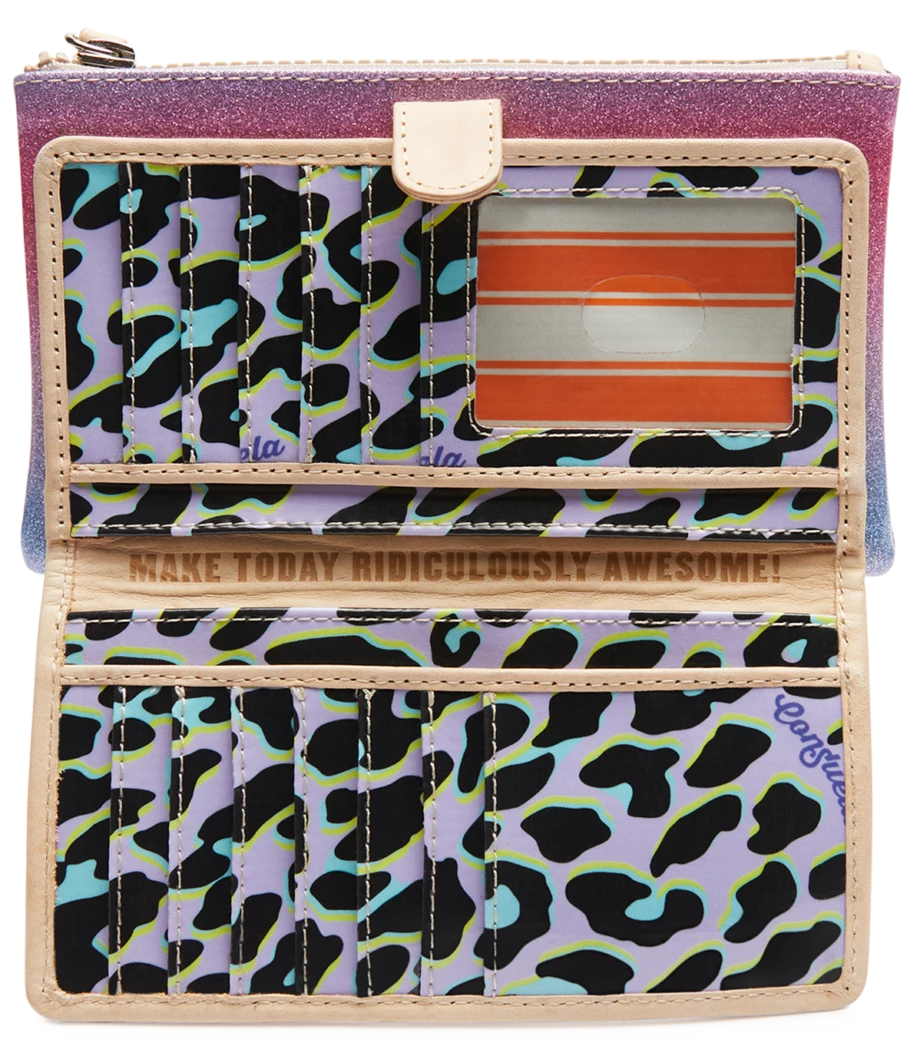 - –12 card slots, ID window, 4 hidden open pocket compartments