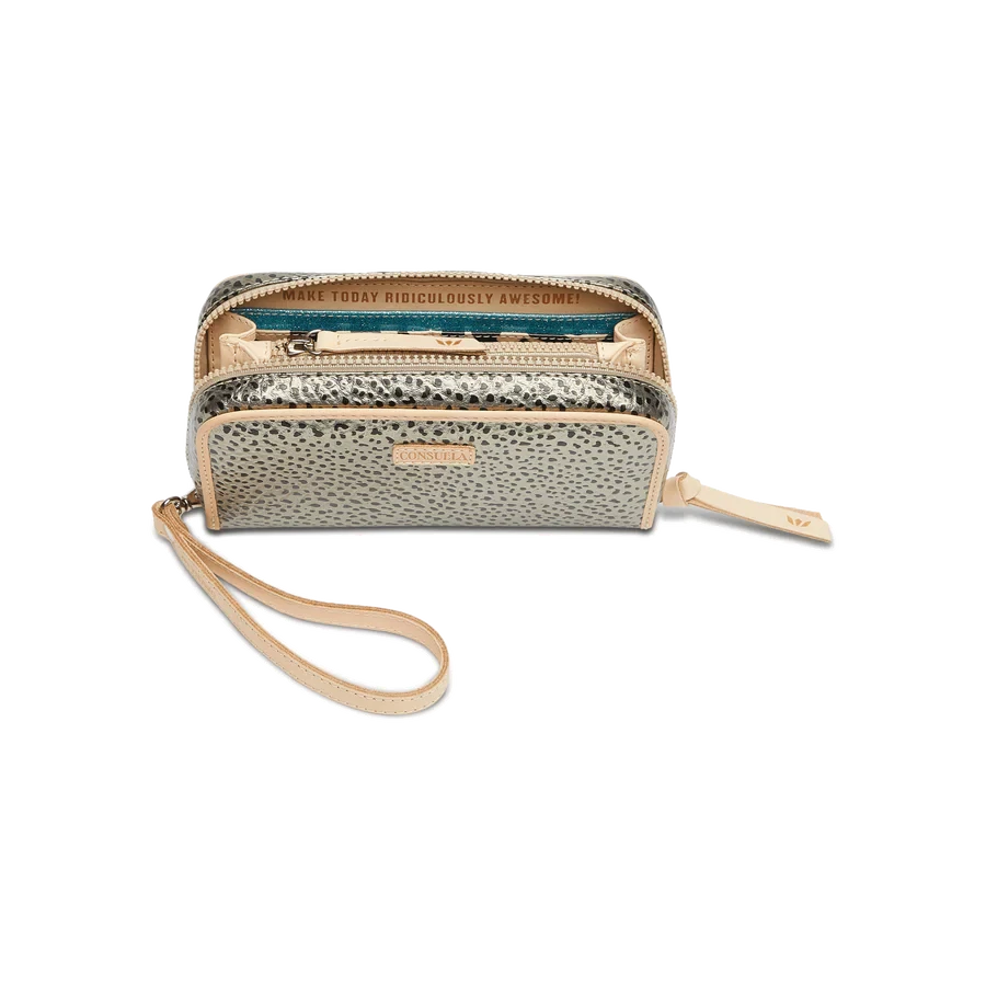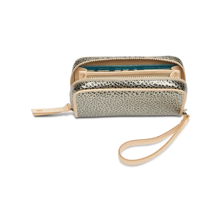 Our roomy Wristlet Wallet is great for life on- the-go with a leather detachable wristlet strap and numerous features to keep you organized, including twelve card slots.