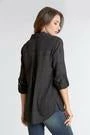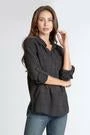 A relaxed fit 3/4 sleeve button down blouse. Cotton Gauze blend