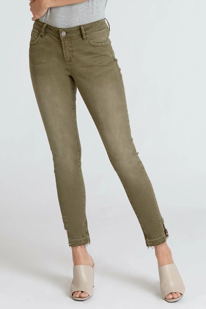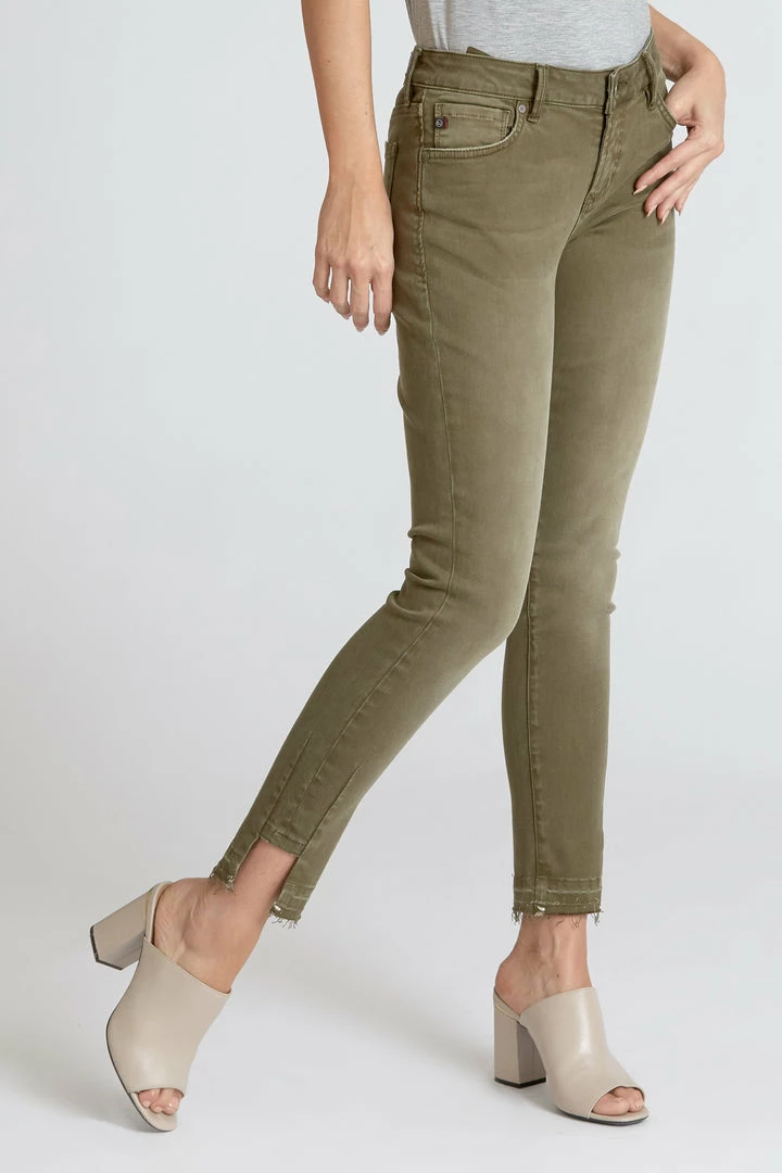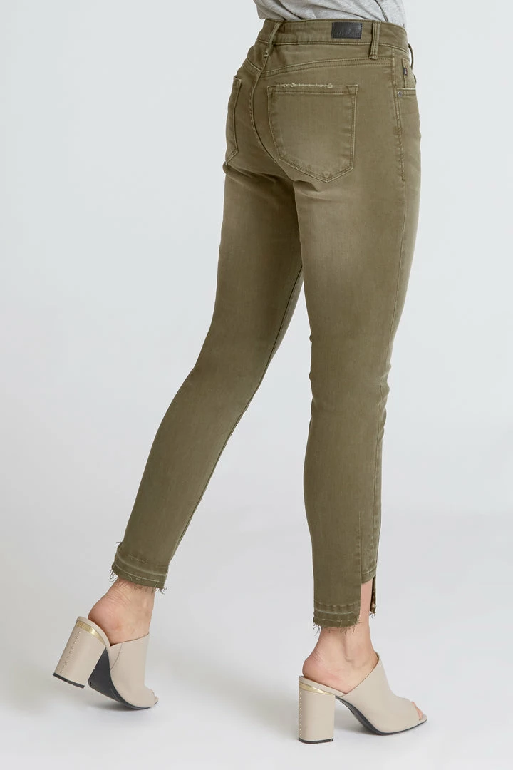 DEAR JOHN SKINNY, MID-RISE, ANKLE, NOTCHED OPEN SLIT, COTTON 88% POLYESTER 9% SPANDEX 3%Β Β Selected Color:Β Olive