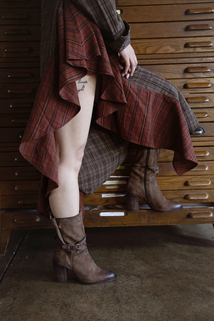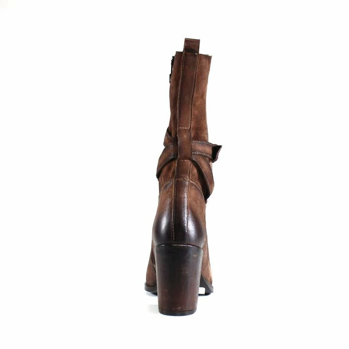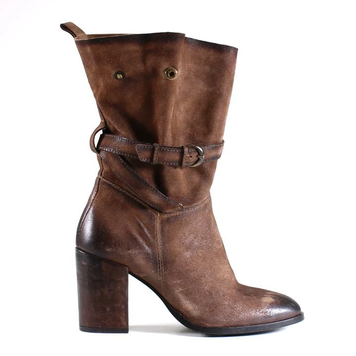 Beautiful leather in a handcrafted antiqued finish creates a well-worn silhouette full of character in this unique mid-calf boot. Create a sleek look by securing the snap closure and adjusting the buckle. A covered 3.25 inch block heel aids in the comfort that a padded insole offers with WILL TON by Diba True.