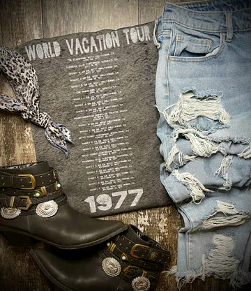 Next level brand t-shirts are soft and hold up beautifully. This vintage crew t-shirt features the cover art and the list of concert dates from 1977 on the back.