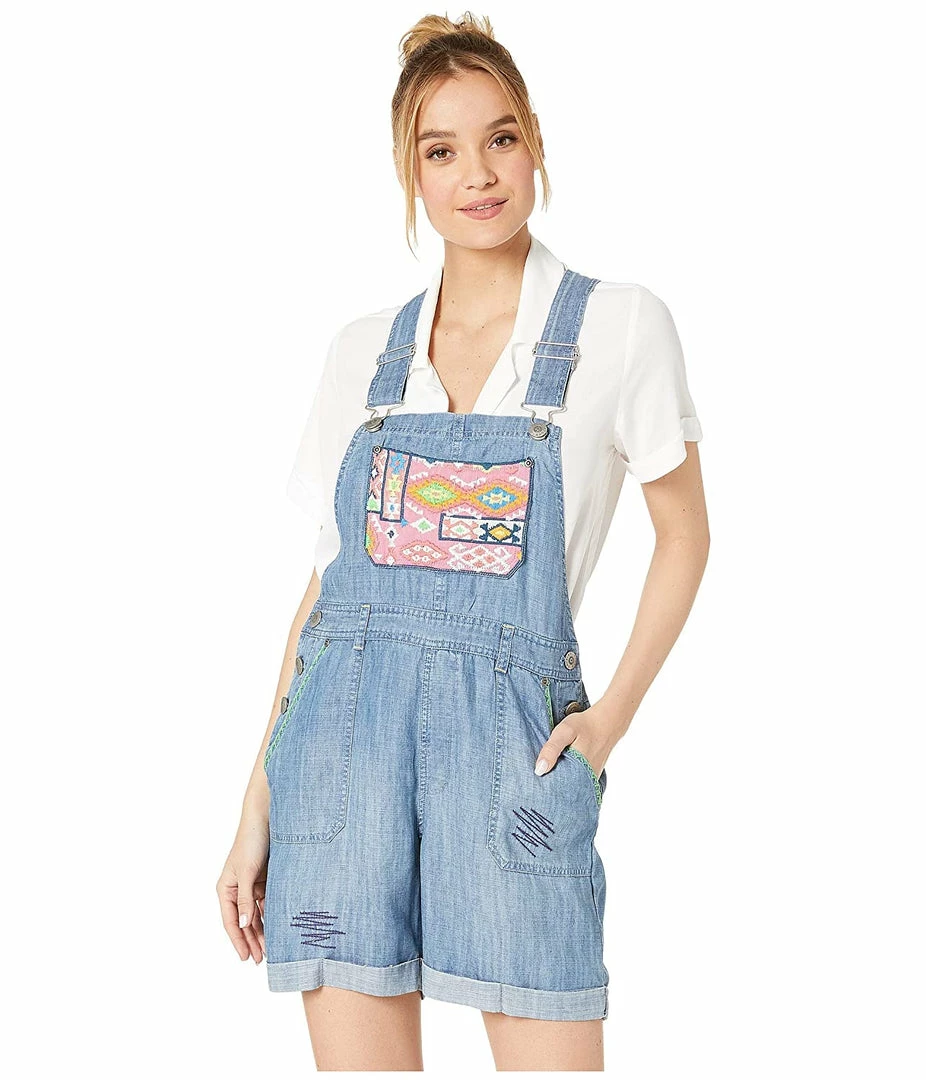 ย Let your artistic nature shine with the Double D Ranchwearยฎ Bajito Overall. Non-stretch denim with embroidered designs offers a slouchy, broken-in look. Adjustable criss-cross shoulder straps attach at the bib and feature a beautiful custom embroidery at the back. Roomy custom-embroidered chest pocket. Angled front pockets with back patch pockets. Belt loop waistband. Dual button closures at sides. Rolled hem detail at shorts. 70% tencel, 30% linen.