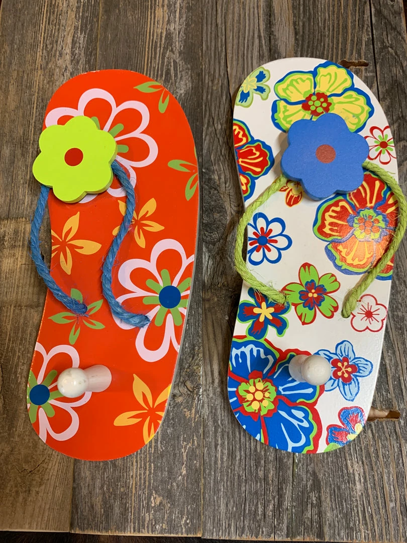 Flip Flop Wall Hanger with wooden hook.- comes in 2 colors.