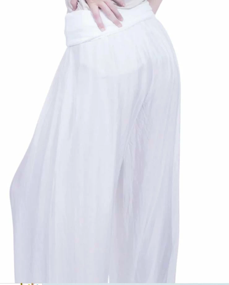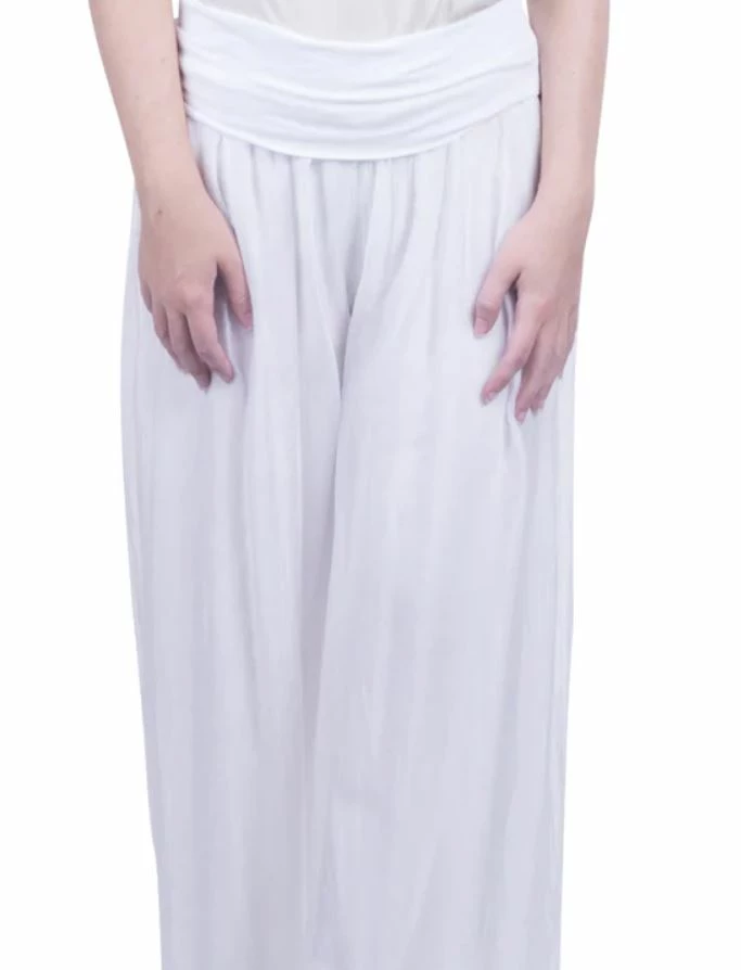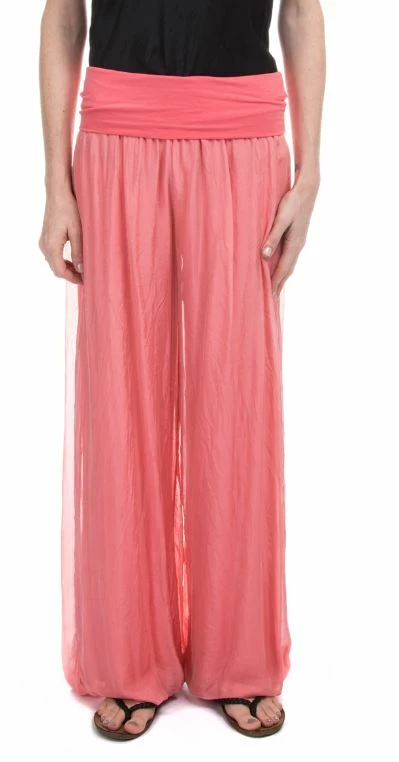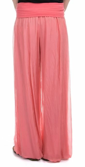 Flowing silk palazzo pant with elastic waist band and balloon hem.