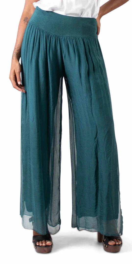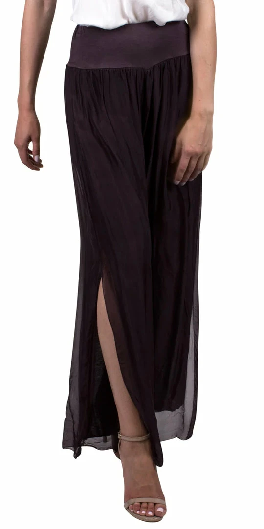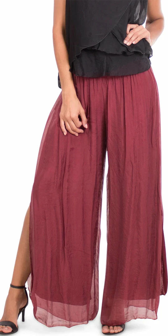 100% Silk Pant with Elastic Waist Band and Side Slit in Hem.ย