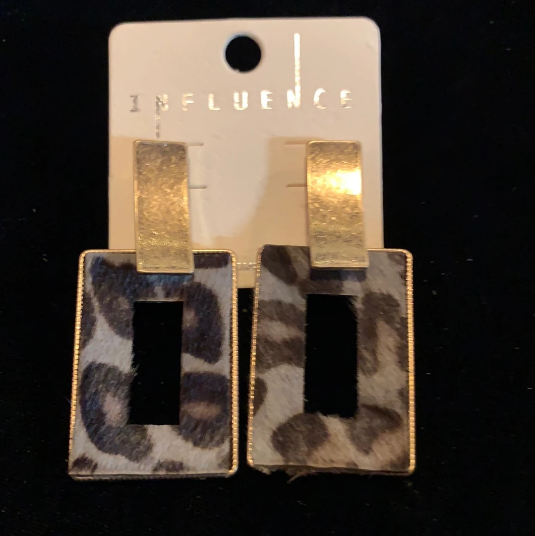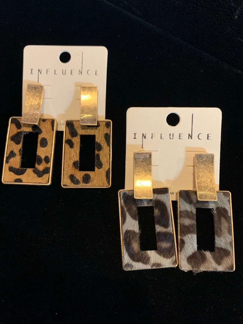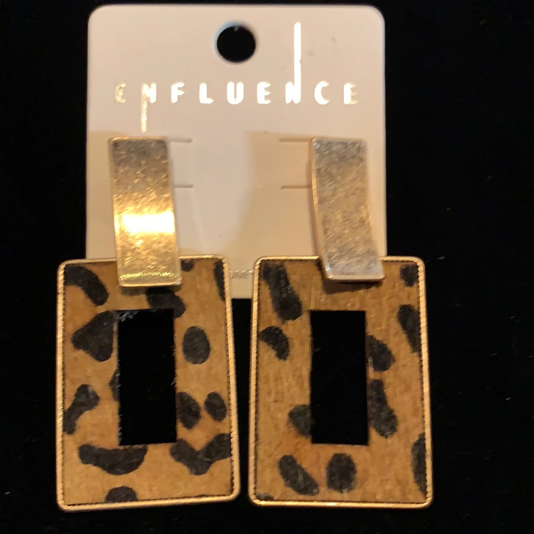 Animal Print Square Earrings In gold tone metal and stud backs.