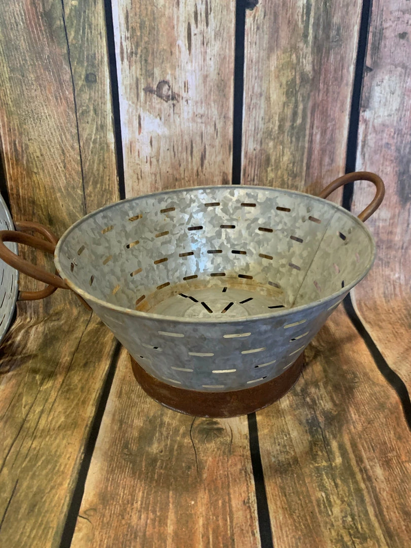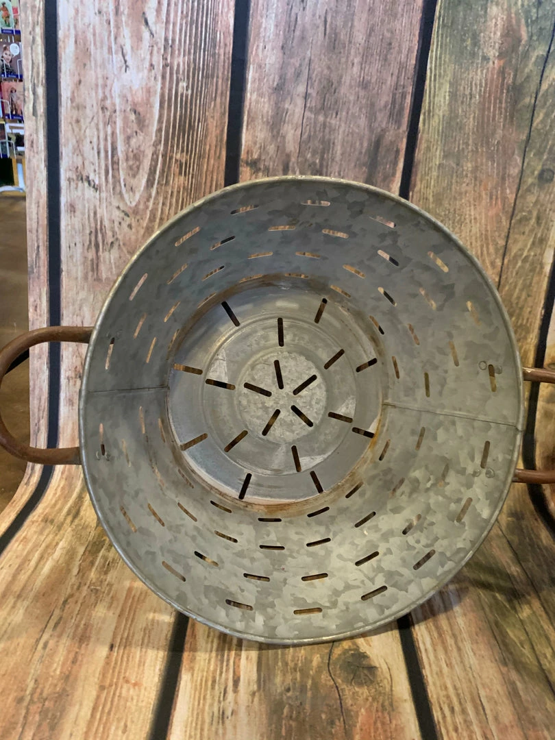 Galvanized Olive Bucket with handles . Β Perfect for plants or throw your blanket in your home in it. Β Perfect in kitchen tooΒ