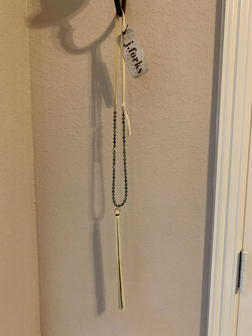 3- Blue/Grey Chrystalโs w/deerskin tasselย