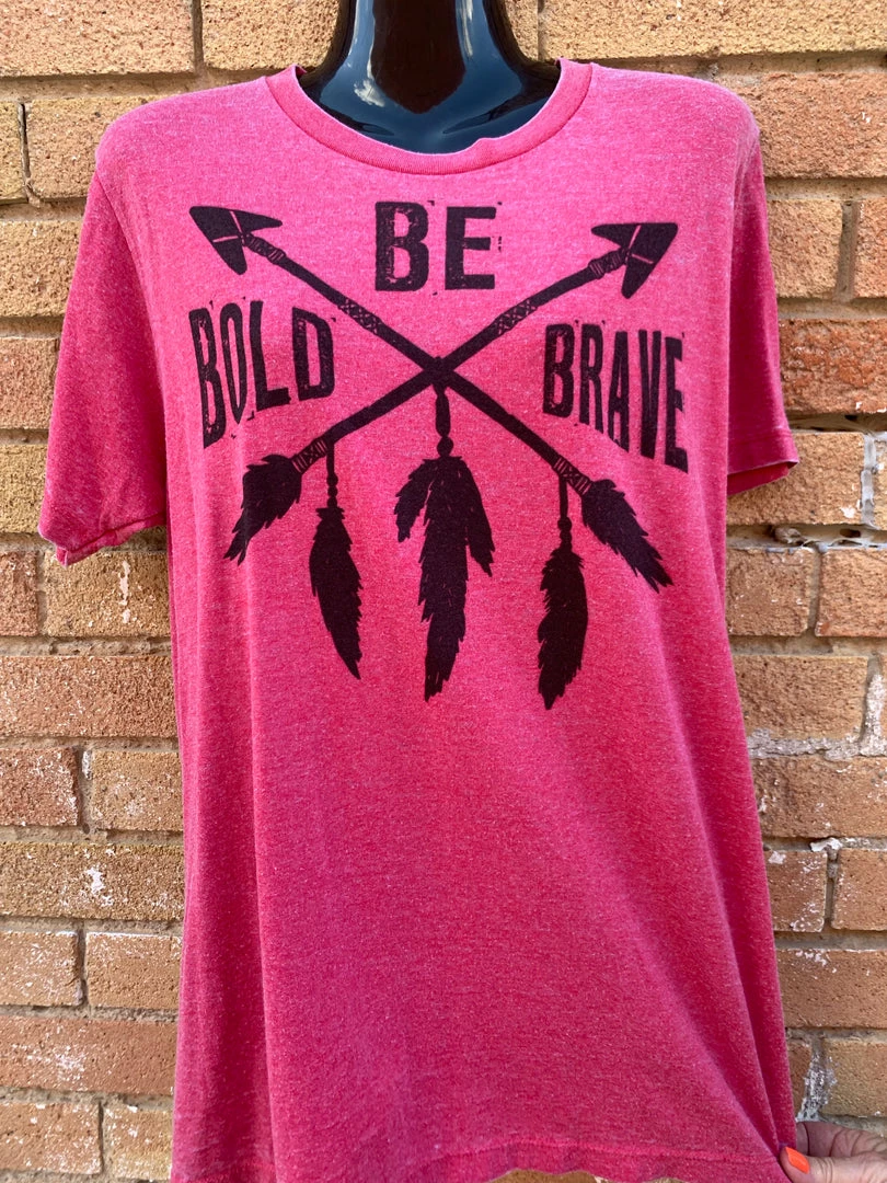 J Forks Be Bold Be Brave Red Acid Wash T-shirt