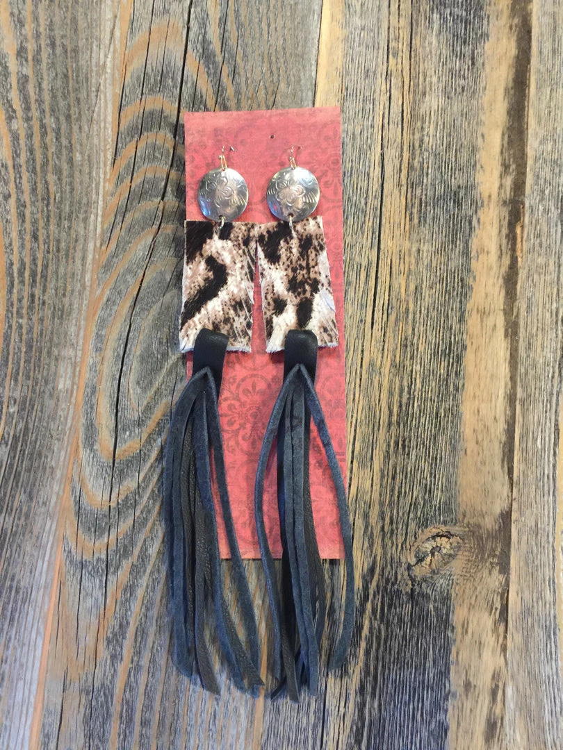 Discount š„ JJās Designs Cheetah Hide Leather Earrings With Black Fringe Accessories š„