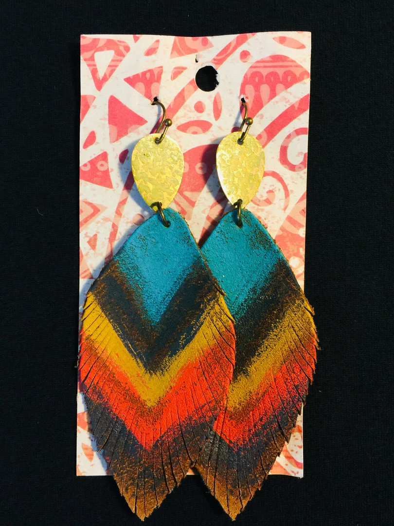Hand painted buckskin leather with variety of colors. Feather EarringsΒ