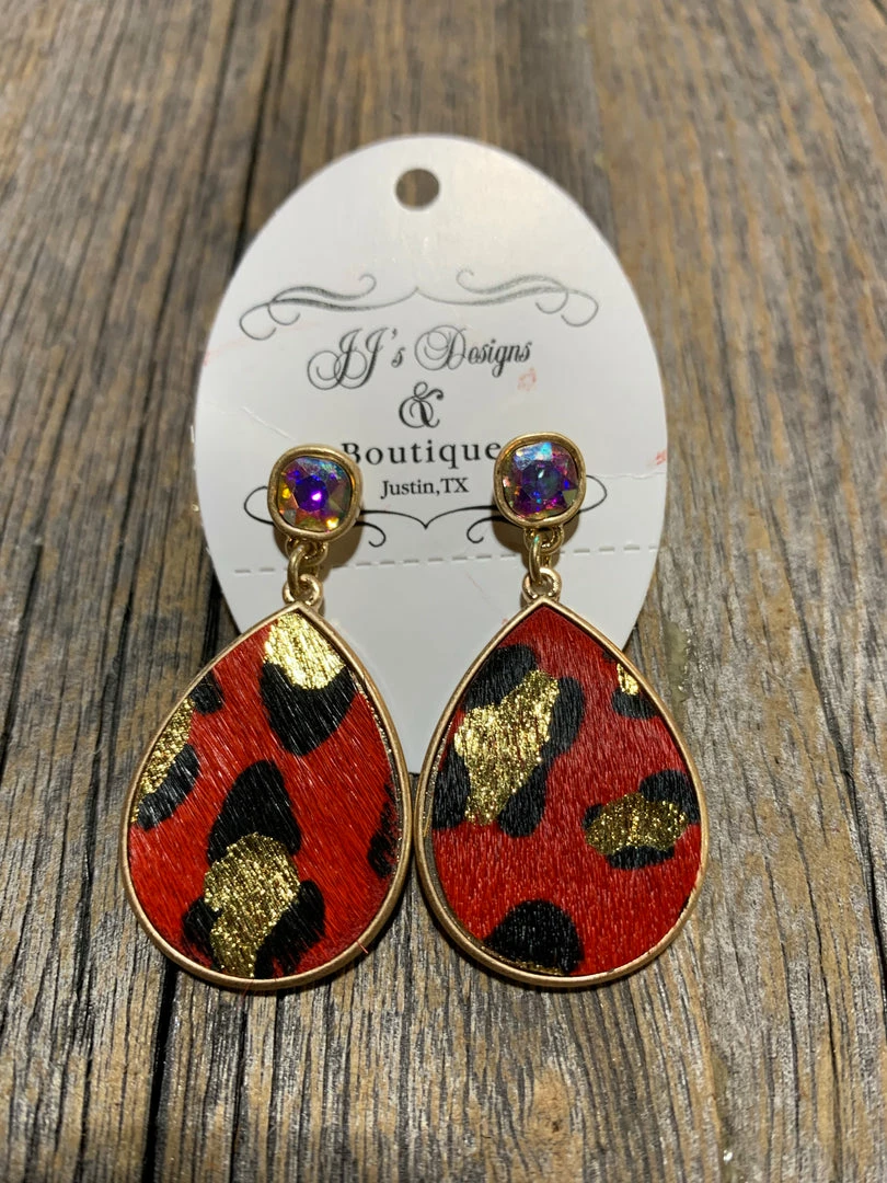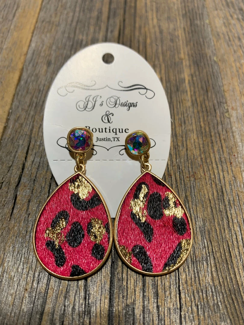 Animal Print Hoop Earrings on studs with iridescent stones at top .