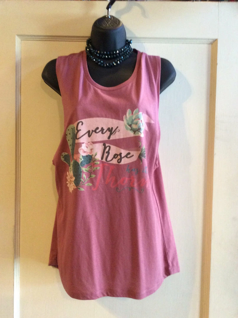 Every Rose Has Its Thorn racer back shirt in mauve.