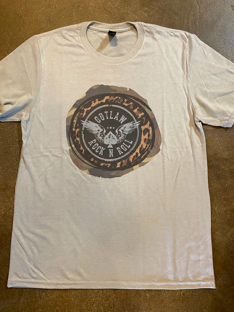 Outlaw Rock n Β Roll T-Shirt on cream heather t shirtΒ