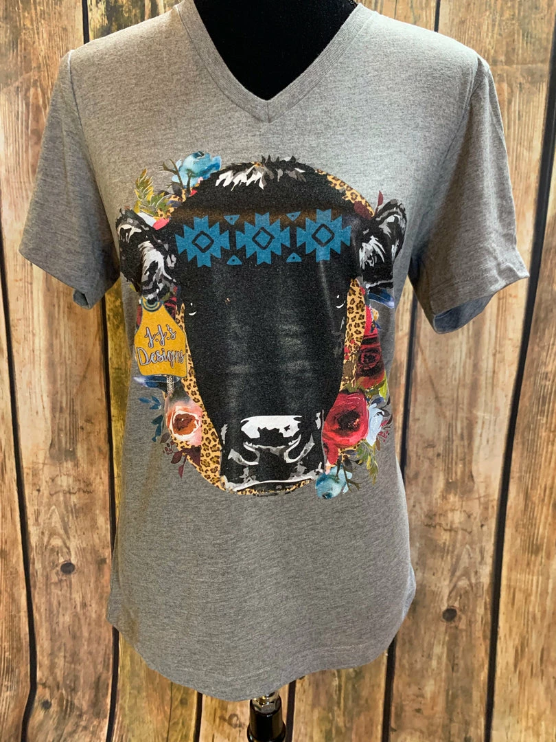 JJs Designs Ear Tag cow shirt. Polyester , Cotton and Rayon BlendΒ