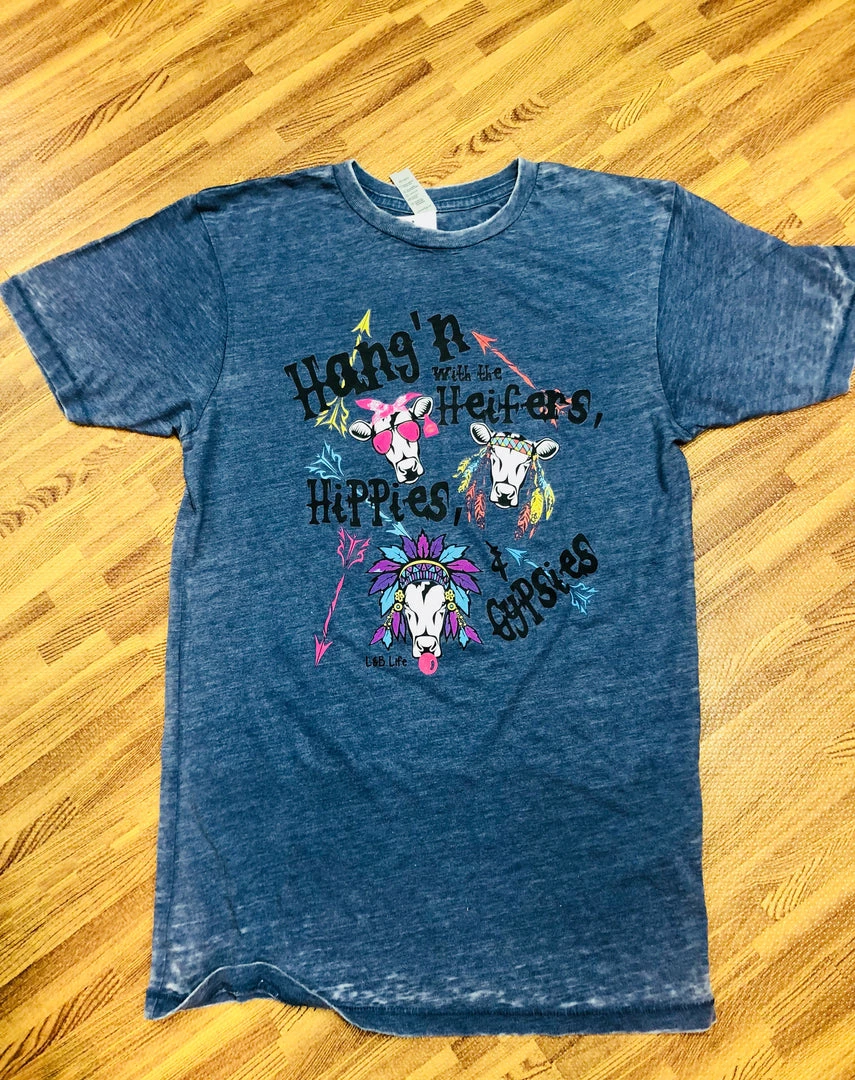 “Hang’n will th the Heifers, Hippies & Gypsies” blue t-shirt