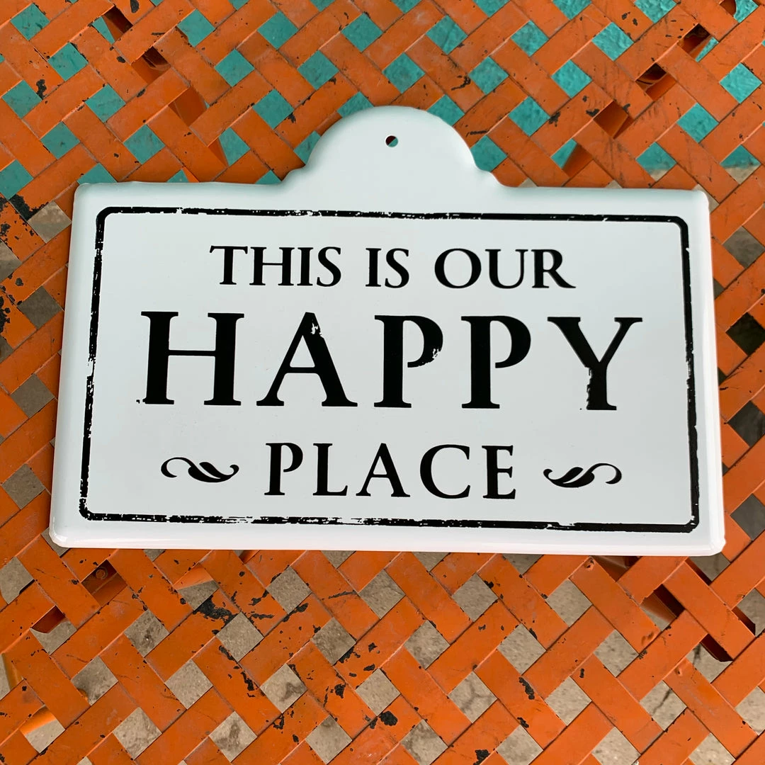 This is My Happy Place – Porcelain signs white with black writing . Β Measures 11.5β X 16βΒ