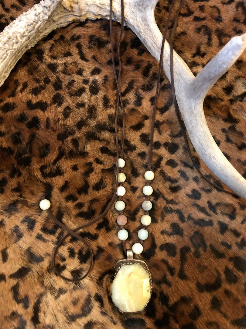Leather and Bead Necklace with Stone – adjustable necklace with pull toggle.