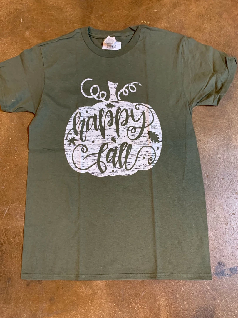 Happy Fall Pumpkin T-Shirt in Olive GreenΒ