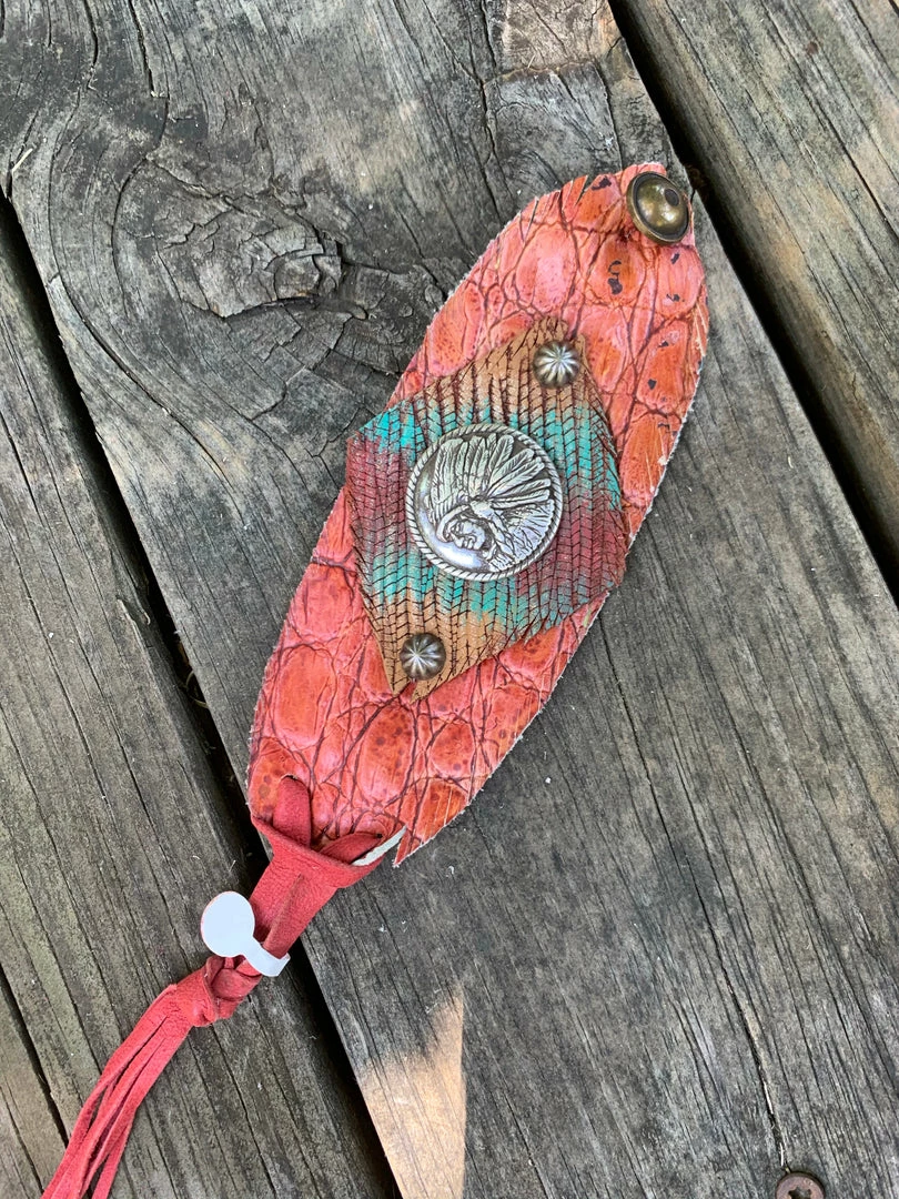 Custom leather bracelets made from designer who is inspired leather maker that is very creative with her unique styles (6 various styles)