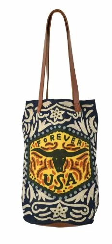 Karma Living –Β Longhorn Tote Bag “Forever USA”Β Β Postage stamp design16x18x5″