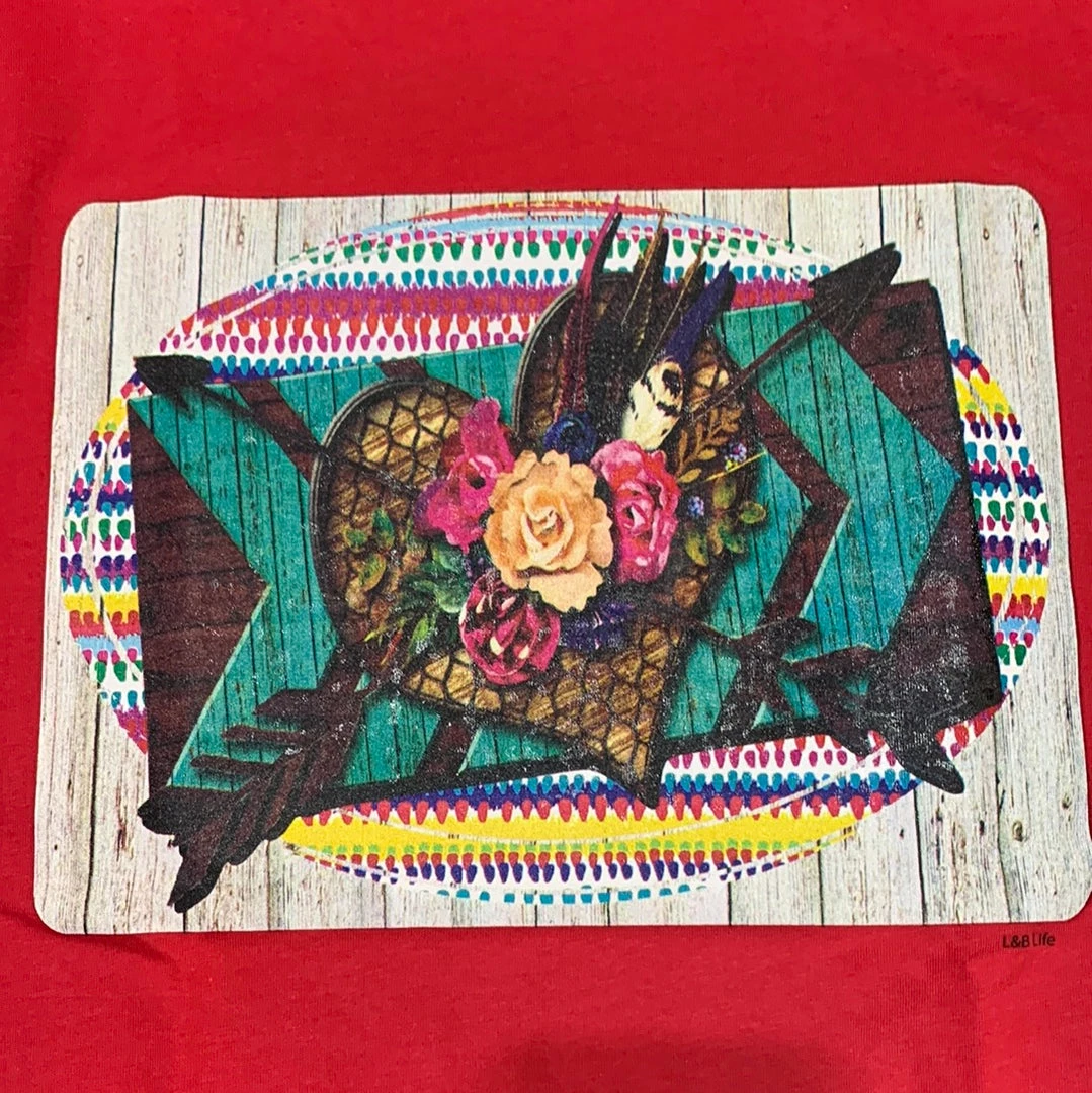 Arrow Heart T Shirt – on red crewneck Bella canvas short sleeve Β t shirt.Β