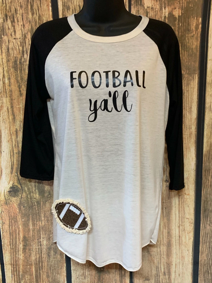 L&B Life Football Ya’ll raglan t-shirt with football patch on hem