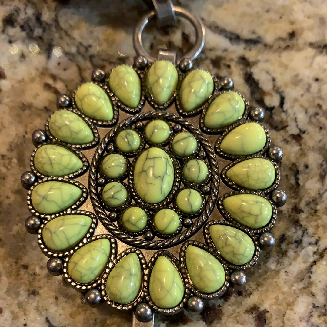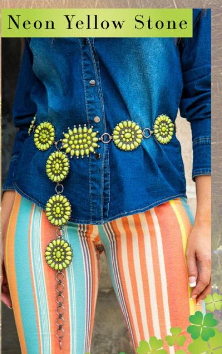 Neon Yellow Concho Belt With stones on metal link belt .
