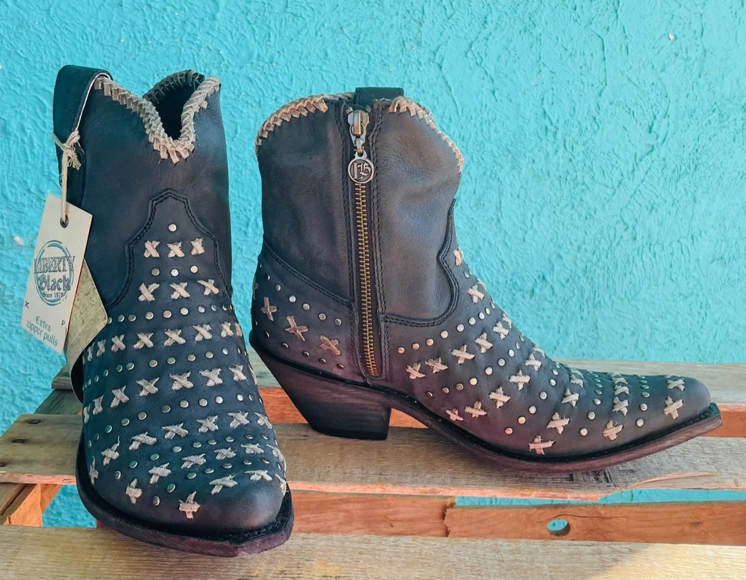 TheΒ Liberty Black Vintage Canela Boot is fierce & western. These western booties have a rustic, vintage, and distressed leather look. Pair these with your favorite jeans or dress for a complete look!
